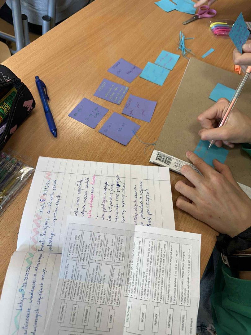 Podczas zajęć uczniowie stworzyli własne zestawy fiszek, które pomagają w zapamiętywaniu pojęć, słówek i definicji. Nauczyli się też, jak korzystać z fiszek w sposób systematyczny, by utrwalać wiedzę.