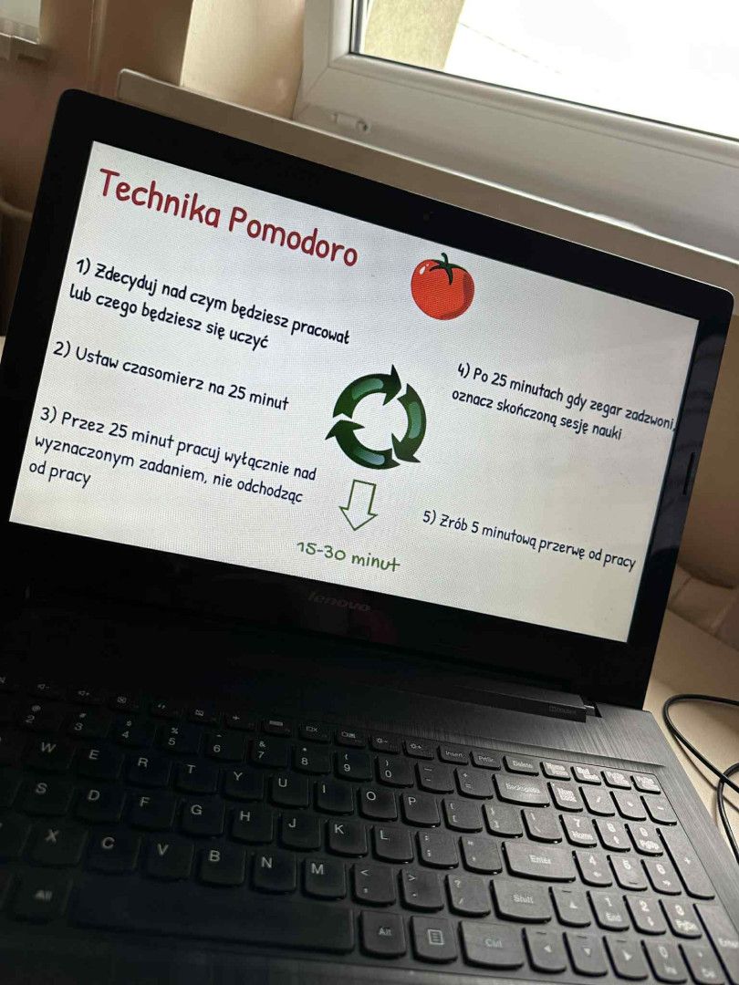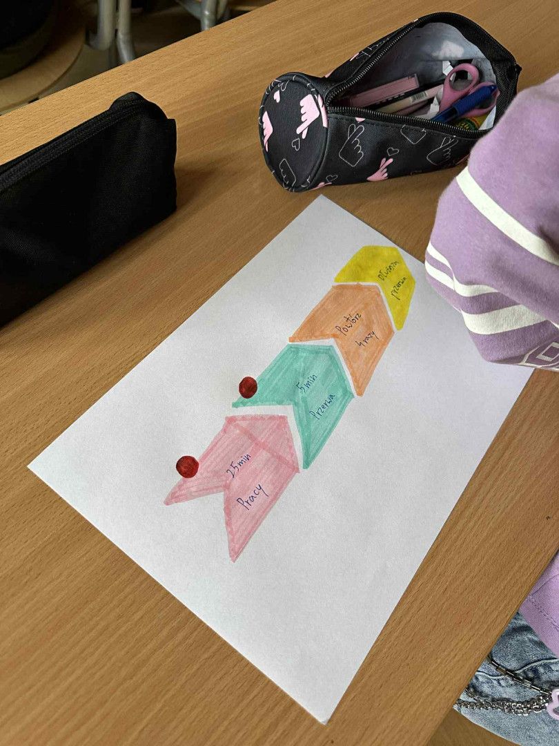 Uczniowie poznali technikę Pomodoro, polegającą na nauce w 25-minutowych blokach z krótkimi przerwami. Dzięki temu zrozumieli, jak zarządzać czasem i utrzymać koncentrację podczas nauki.