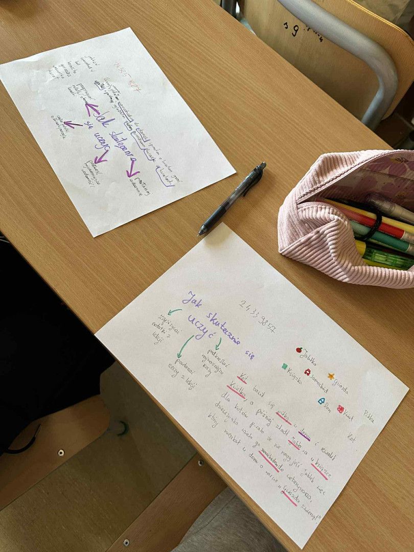 Podczas zajęć uczniowie poznali metodę Cornella i uczyli się tworzyć przejrzyste, logiczne notatki. Pracując z różnymi materiałami edukacyjnymi, zapisywali najważniejsze informacje, formułowali pytania oraz tworzyli krótkie podsumowania. W ten sposób ćwiczyli świadome notowanie, lepsze rozumienie treści oraz skuteczne porządkowanie i utrwalanie wiedzy.