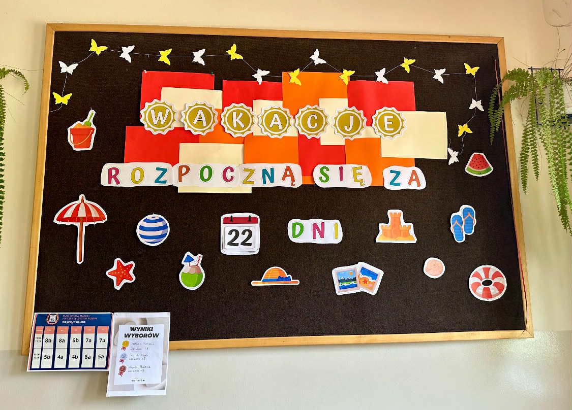 - Odliczanie dni do wakacji – za pomocą gazetki, SU codziennie zmieniało kartkę z kalendarza z daną liczbą, odliczając tym sposobem dni do wakacji.