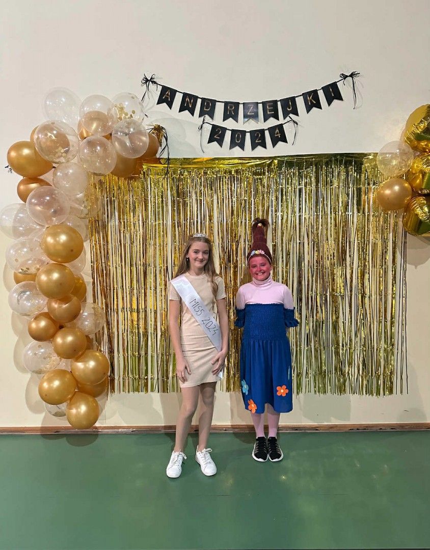 - Dyskoteka andrzejkowa – organizacja zabawy dla klas 4–8, w tym przygotowanie wyjątkowej ścianki z balonów, na której uczniowie mogli wykonywać sobie pamiątkowe zdjęcia. Zrobiliśmy plakat promujący zabawę oraz ogłosiliśmy konkurs na najlepsze przebranie. Opiekun przygotował dla zwycięzców talony na „dzień bez pytania”.