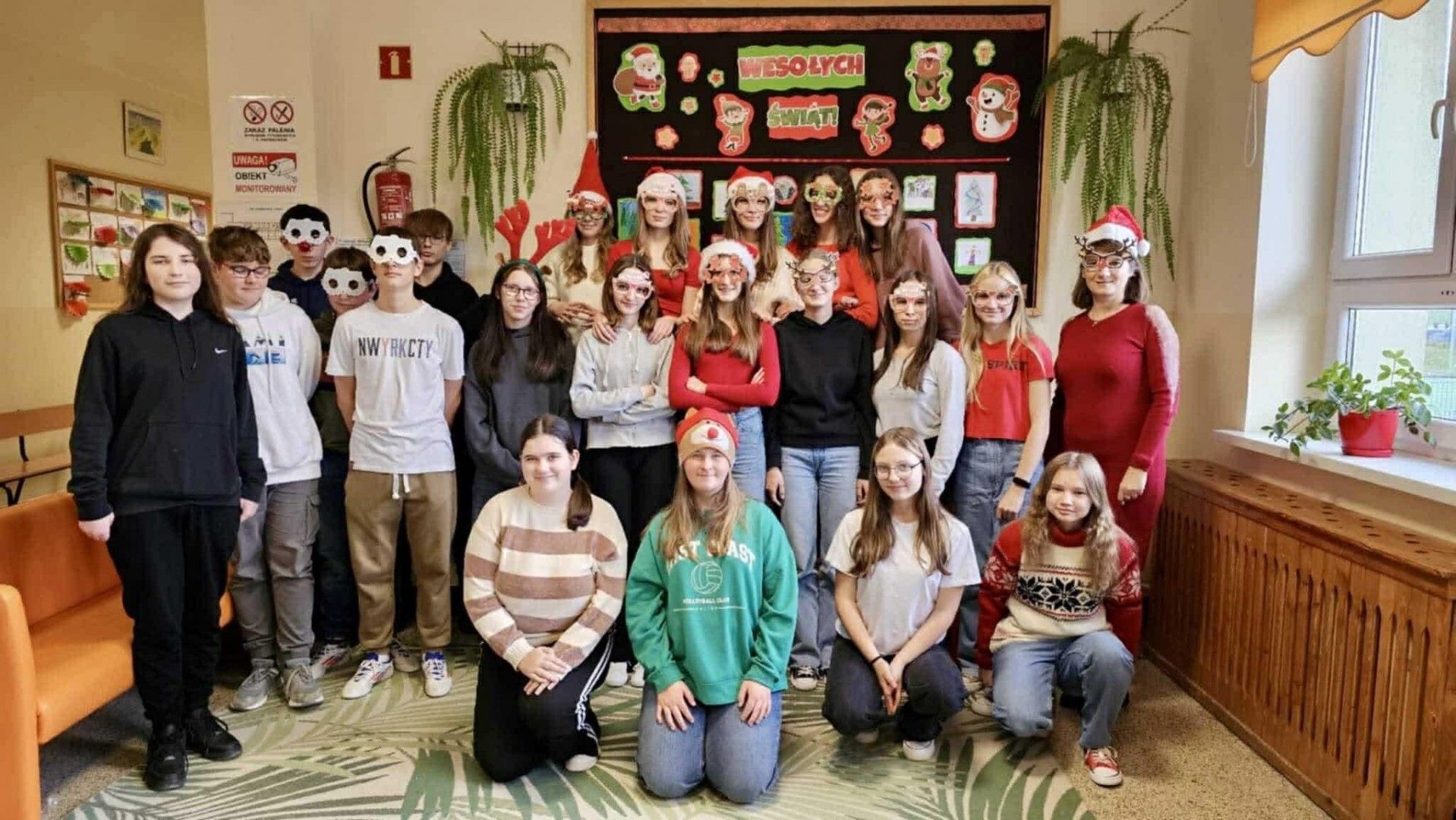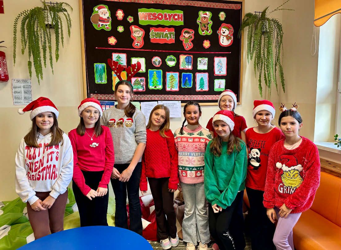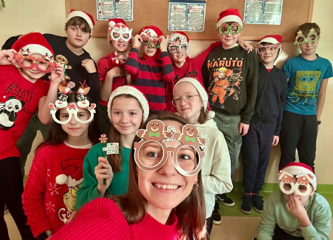 - Mikołajki – zachęciliśmy do ubrania świątecznego stroju w tym dniu, wszyscy uczniowie mieli okazję wykonać sobie zdjęcia w przygotowanych przez SU świątecznych okularach. Radzie Rodziców dziękujemy za zakup cukierków z okazji Mikołajek.