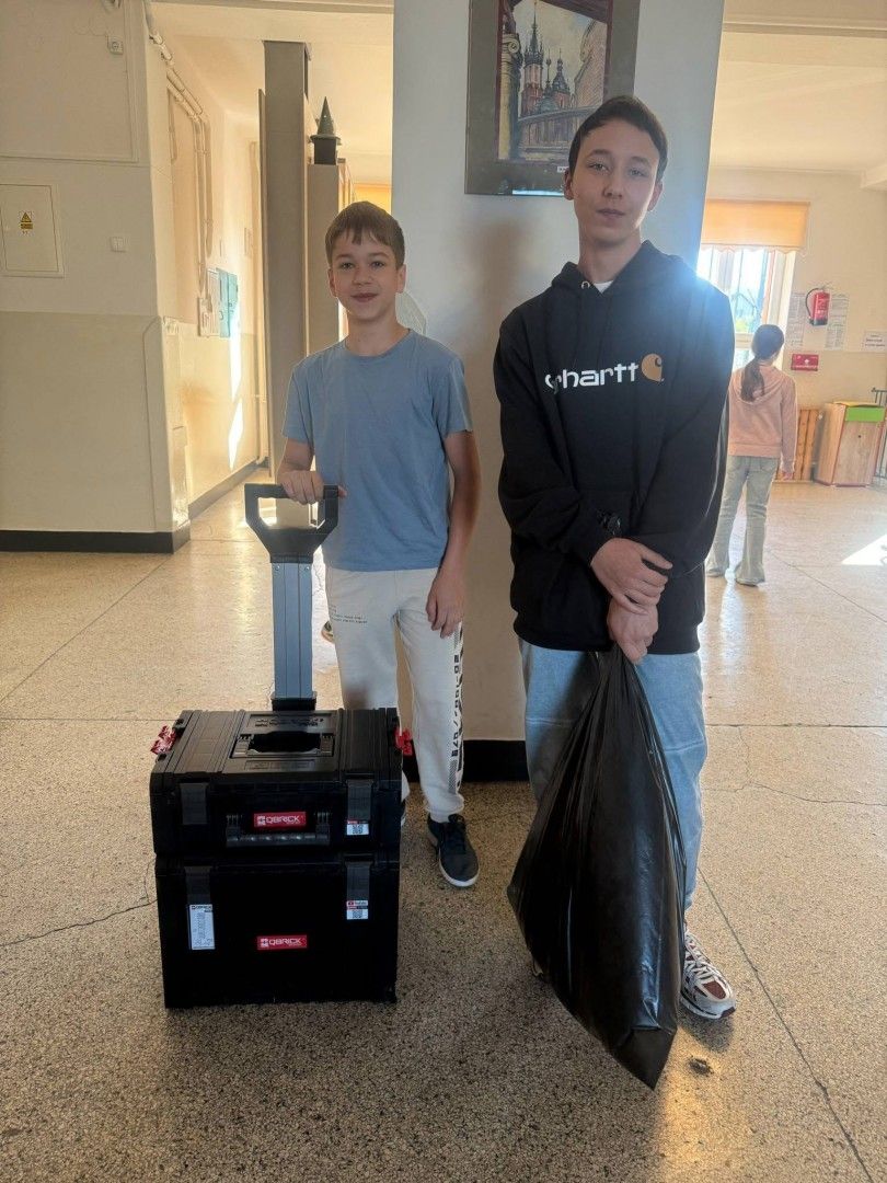 - Dzień bez plecaka – uczniowie zamienili tradycyjny plecak na „nosidło”, co sprawiło im ogromną frajdę i pozwoliło poszerzyć wyobraźnię.