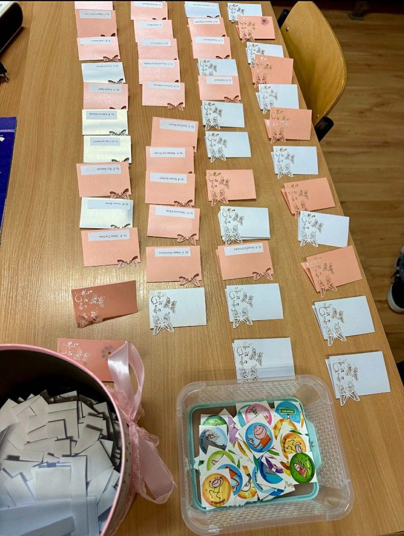 - Walentynki – zorganizowanie poczty walentynkowej, wykonanie skrzynek walentynkowych, plakatu, rozdawanie naklejek wszystkim uczniom w postaci serca, segregacja listów, a później dostarczenie ich adresatom.