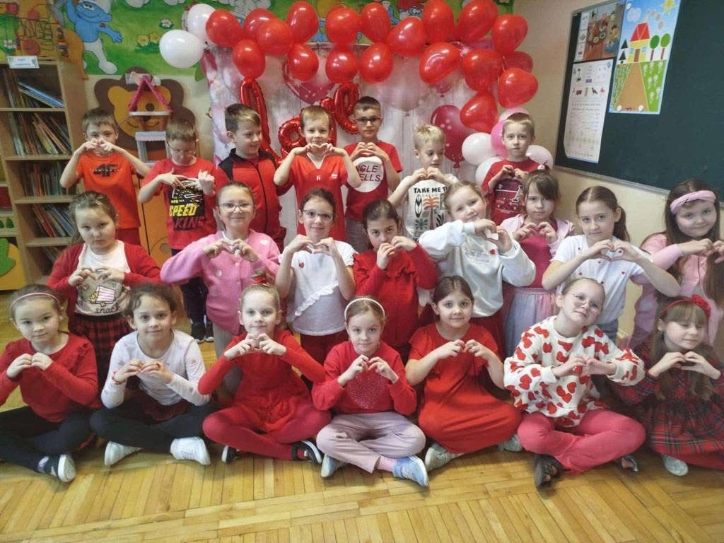 - Poczta walentynkowa – przygotowanie z uczniami 1-3 walentynek na gazetce.