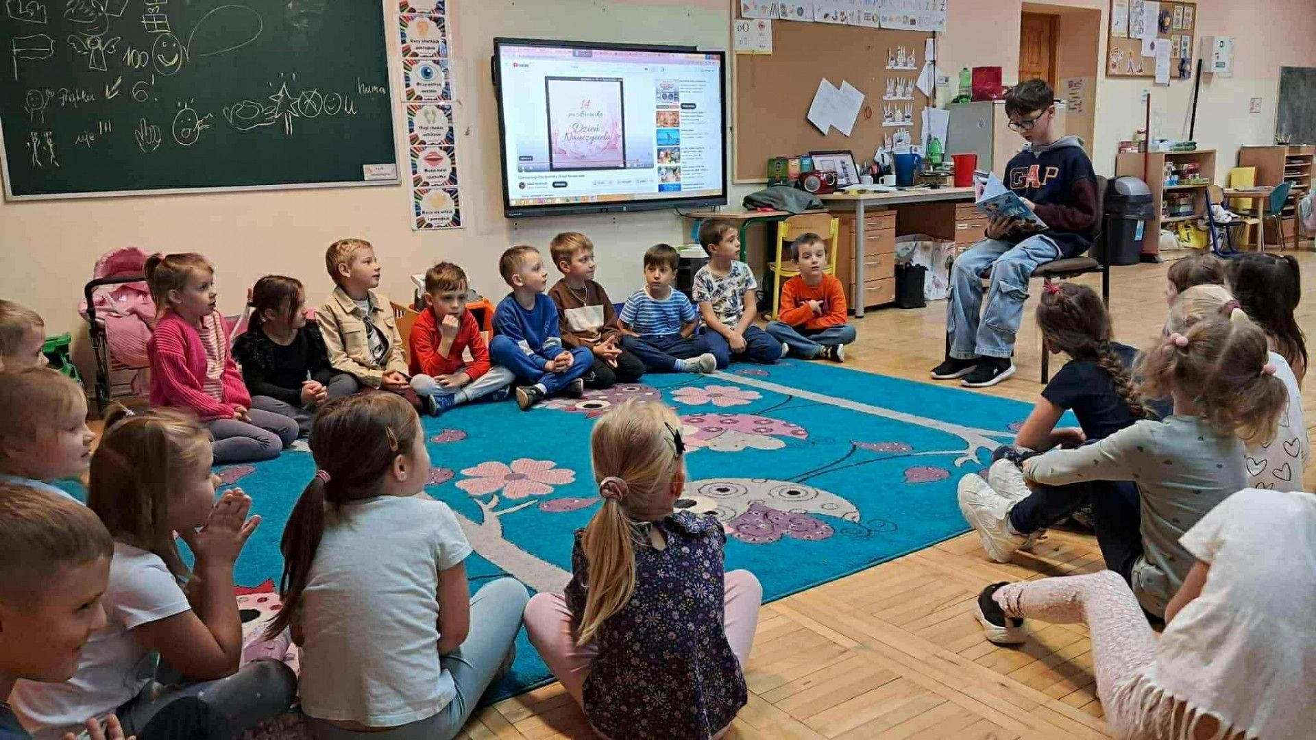 4. Akcja czytelnicza Starsi czytają młodszym. Jej celem była promocja czytelnictwa oraz integracja starszych uczniów z młodszymi.