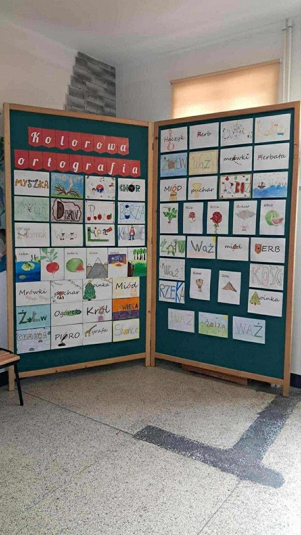 1. Wystawa prac uczniowskich wykonanych na lekcjach z wychowawcą oraz na zajęciach specjalistycznych pod tytułem Kolorowa ortografia.