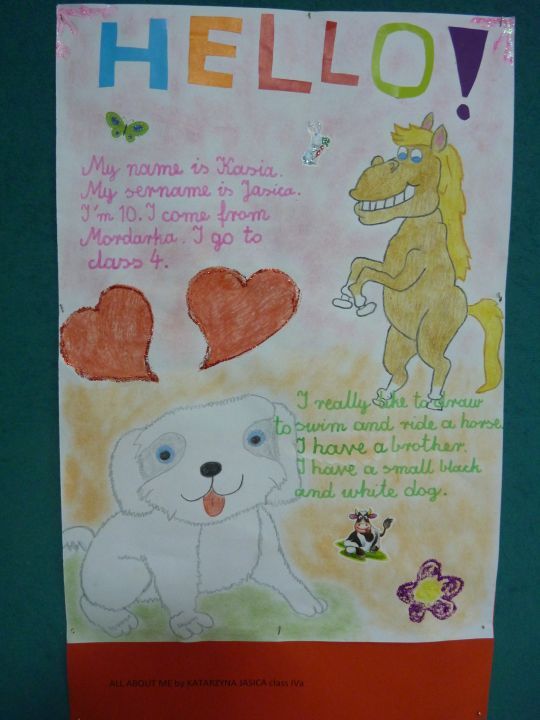 Znam już na tyle język angielski, że potrafię w nim opisać interesujące mnie tematy. Mogą tak powiedzieć uczniowie szkoły podstawowej. Umiejętność wyrażania się w języku obcym połączona z różnorodnymi technikami plastycznymi daje ciekawe prace i satysfakcję uczniom i nauczycielom.
