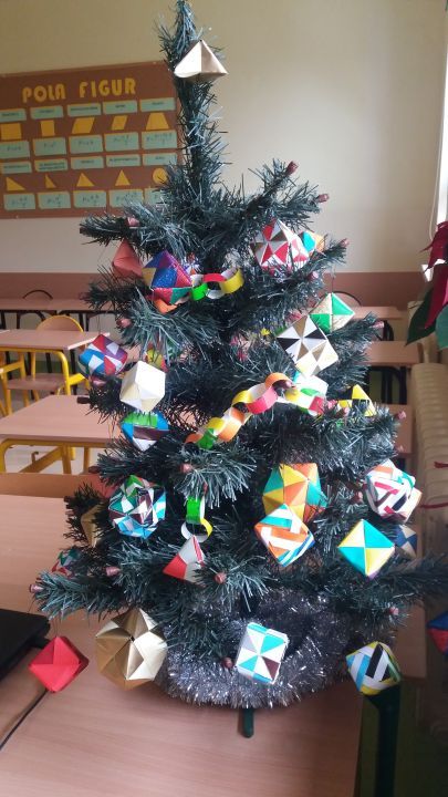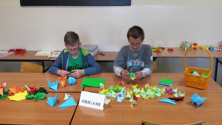 Wychodząc naprzeciw potrzebom i zainteresowaniom uczniów od kilku lat działa w szkole koło orgiami. Zajęcia prowadzone są przez panie mgr Ewę Zelek i mgr Małgorzatę Warzechę. Figury wykonane metodą origami pojawiały się wiele razy w naszej szkole np. na choince, na kółku matematycznym, a także w gabinecie logopedycznym. Uczniowie wykonane modele prezentowali podczas corocznych Dni Matematyki odbywających się w naszej szkole. Oprócz pokazów odbywają się również warsztaty origami prowadzone przez uczniów. Dla niewtajemniczonych: Origami jest to sztuka składania papieru, pochodząca z Chin, rozwinięta w Japonii. W XX w. ostatecznie ustalono reguły origami: punktem wyjścia ma być kwadratowa kartka papieru, której nie wolno ciąć, kleić i dodatkowo ozdabiać i z której poprzez zginanie tworzone są przestrzenne figury. Poniżej można obejrzeć twórczość uczniów. Został również przygotowany tutorial przedstawiający tworzenie sześcianu za pomocą modułu sonobe.