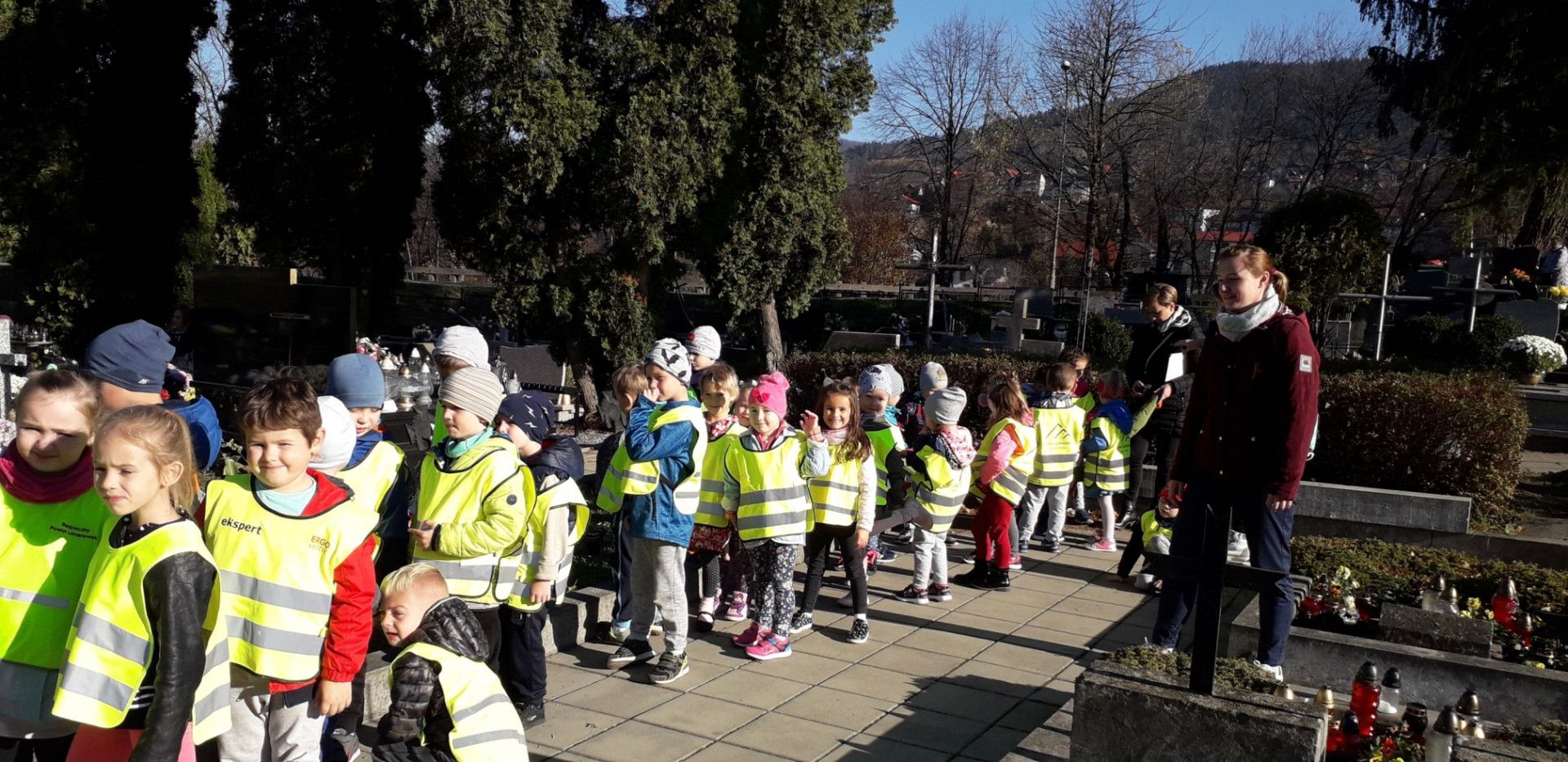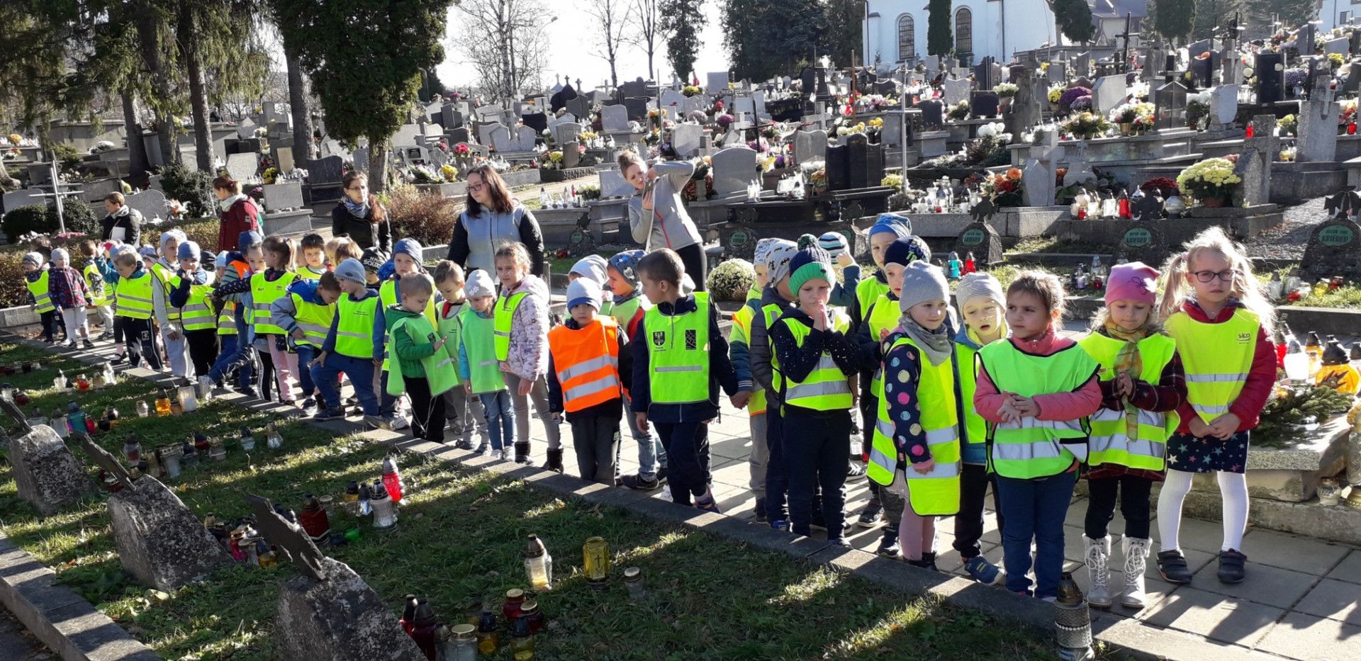W dniu 07.11.2018 r. najmłodsze dzieci naszej szkoły wraz z wychowawczyniami odwiedziły groby Żołnierzy spoczywających na Limanowskim cmentarzu. Wizyta w tak ważnym miejscu wzbudziła w dzieciach powagę i zadumę. Dzieci wraz z Paniami odmówiły modlitwę za zmarłych i zapaliły znicze. Przedszkolaki doskonale wiedziały jak należy zachowywać się w tak poważnym miejscu.