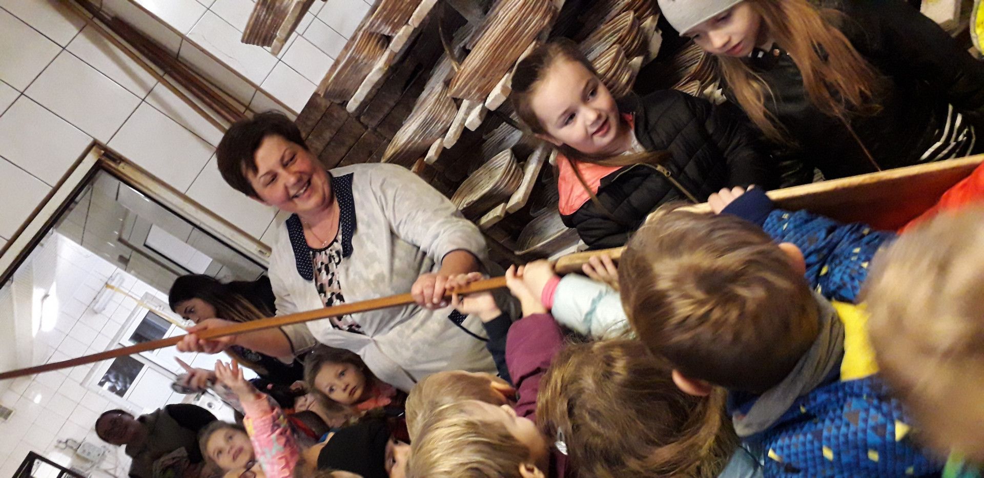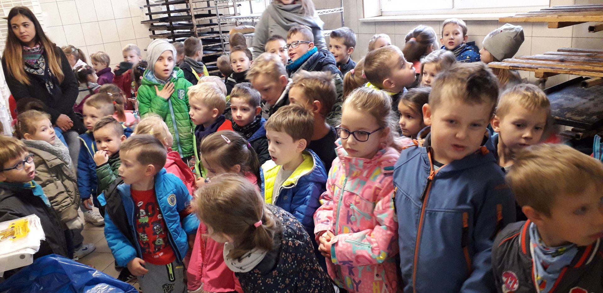 W drugim tygodniu listopada dzieci z klas 0 miały okazję odwiedzić piekarnię w Męcinie. Na miejscu czekała na nas sama właścicielka oraz przemiła załoga piekarni. Dzieci mogły zobaczyć urządzenia służące do wypieku pieczywa, np. różnego rodzaju mieszadła, ogromne piece, krajalnice. Udało się im nawet utrzymać ogromną „łopatę” służącą do wkładania i wyjmowania chleba z pieca. Jak powstaje chleb? – dla przedszkolaków z Mordarki, to już nie tajemnica. Dzieci były jednak bardzo zaskoczone informacją, że wszystko jest pieczone już w nocy, nad samym rankiem - pakowane i rozwożone do sklepów, by świeże i smaczne pieczywo mogło trafić także na ich stoły. Okazało się, że praca piekarza nie jest taka łatwa jak by się wydawało. Nie zniechęciło to jednak dzieci i wszystkie marzą o tym by w przyszłości zostać piekarzem.