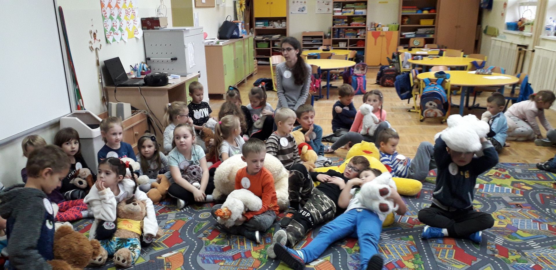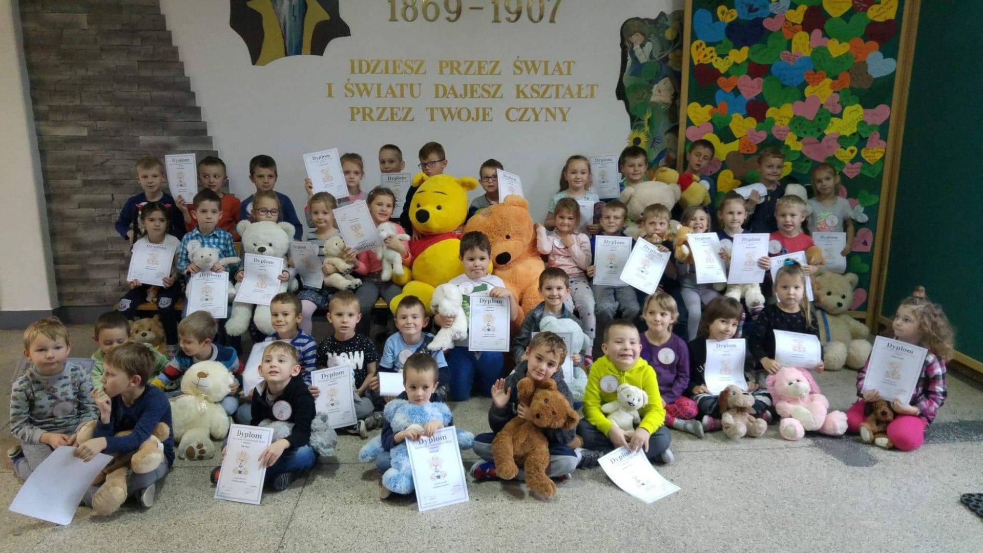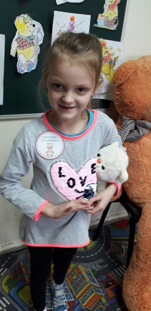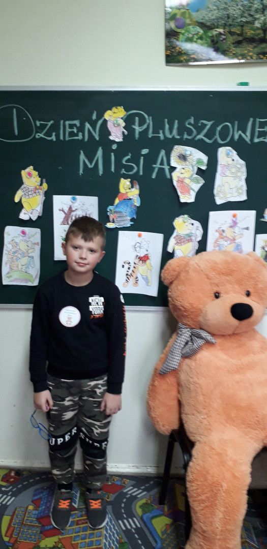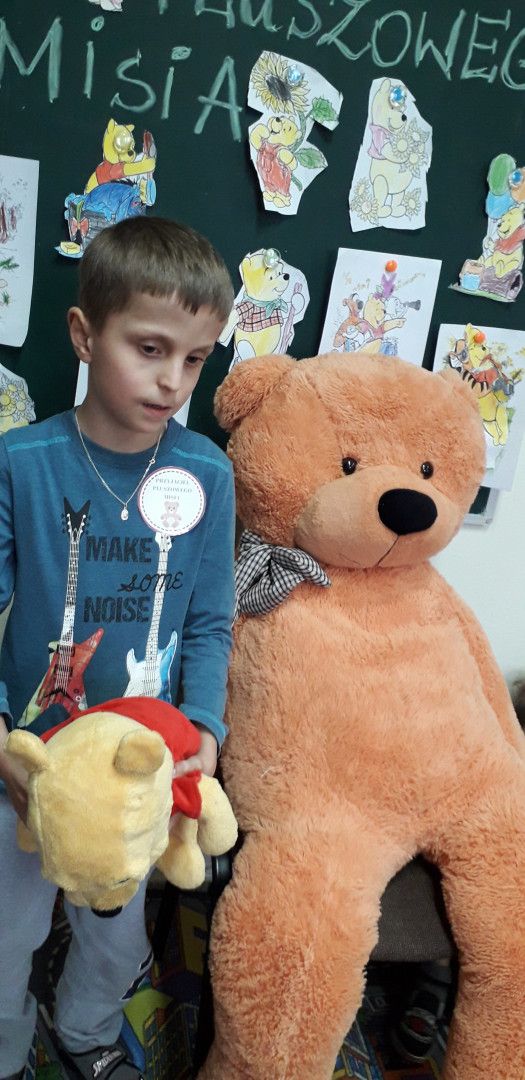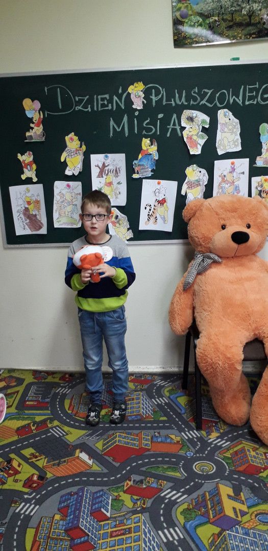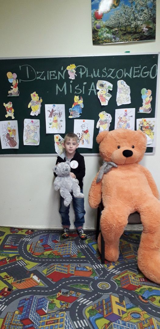 Dzieci specjalnie na ten Dzień przygotowały wierszyk o Misiu i pięknie wystąpiły w klasowym konkursie recytatorskim. Przedszkolaki wykonały również pracę plastyczną „Mój przyjaciel Miś”. Każde dziecko otrzymało kotylion „przyjaciel Pluszowego Misia” oraz dyplom za udział w konkursie recytatorskim.