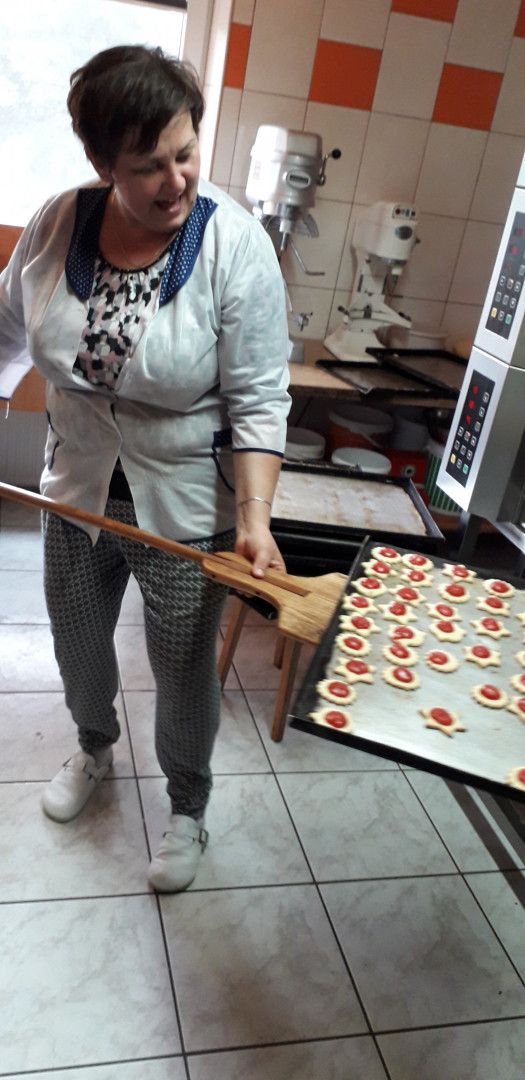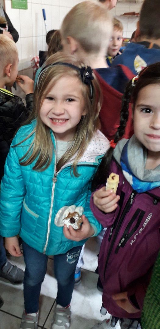 Panie z cukierni przygotowały dla dzieci niespodziankę, nie tylko pokazały jak przygotowuje się ciasto na wypieki, ale pozwoliły dzieciom samodzielnie wyciąć ciasteczka, które zostały upieczone i podarowane dzieciom w prezencie. Dziękujemy również za prezenty w postaci ciasteczek i pysznego chleba.