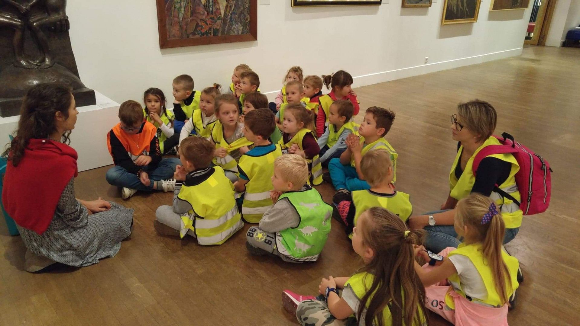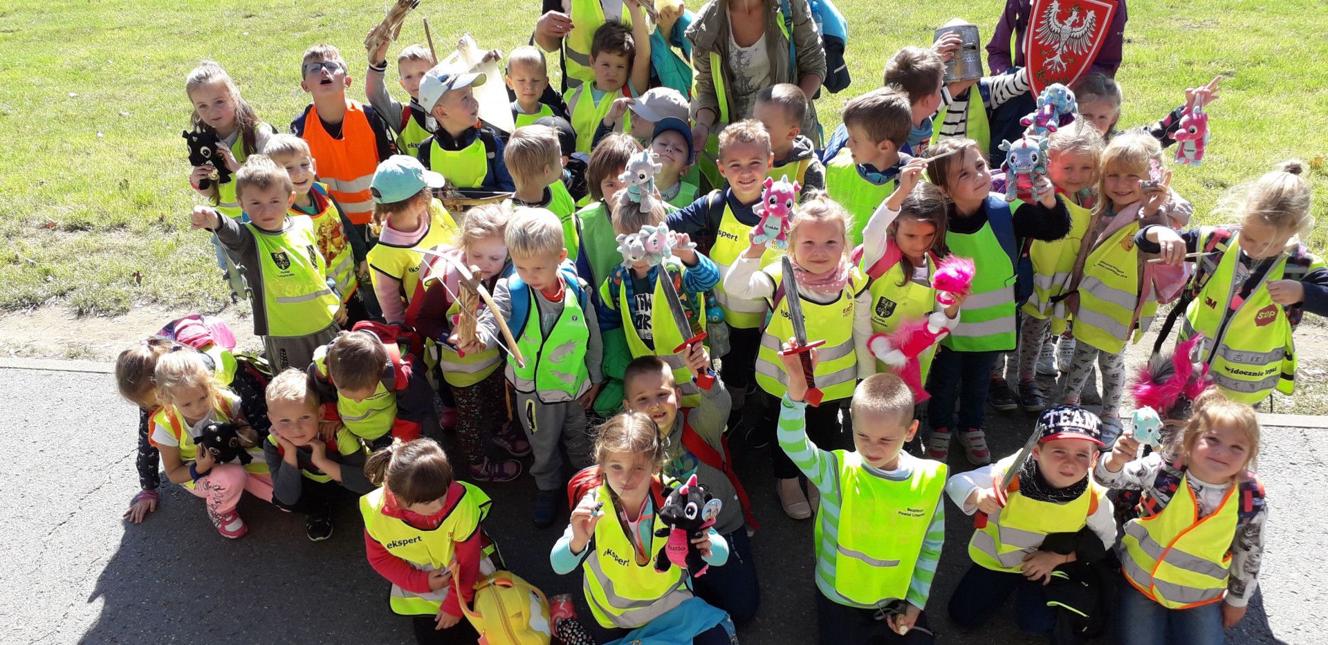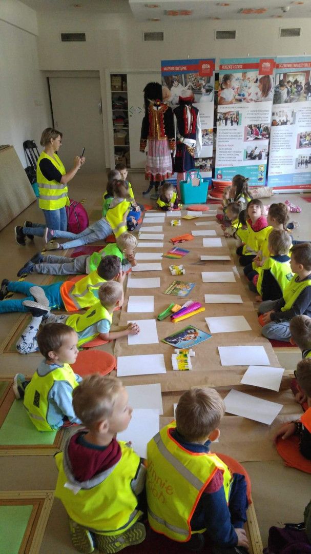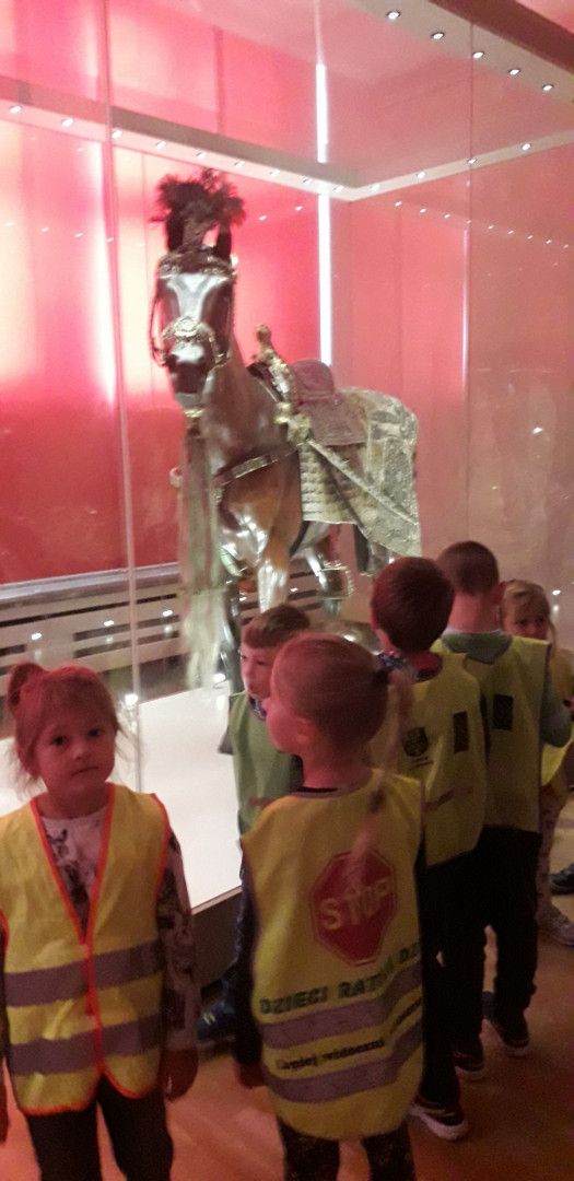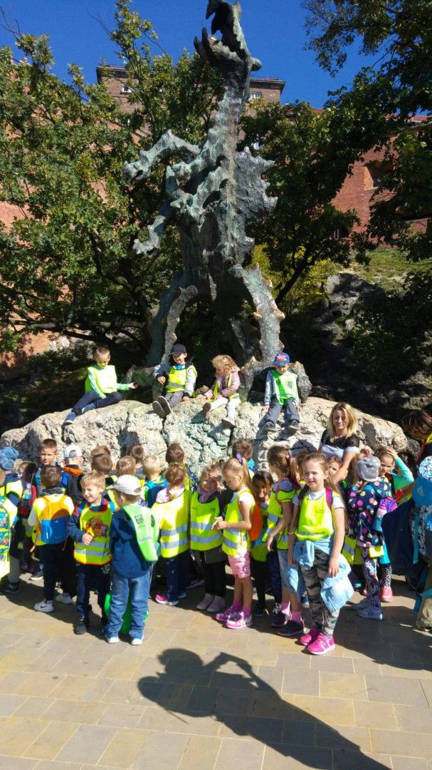 W dniu 28.09.2018 r najmłodsi uczniowie naszej szkoły wybrali się na wycieczkę do Krakowa. W myśl zasady „Noś odblaski – świeć przykładem!” wszystkie dzieci i opiekunowie, by być dobrze widocznymi na drodze nie zapomnieli o odblaskowych kamizelkach. Przygoda w Krakowie rozpoczęła się od lekcji w Muzeum Narodowym. W ramach programu „Kultura Dostępna 2018” dzieci wzięły udział w bezpłatnych lekcjach pt „Kto Ty jesteś? Muzealna lekcja patriotyzmu”. Tutaj dowiedziały się jakie są symbole Narodowe naszego państwa, jak wyglądał strój rycerski i jak zmieniał się jego wygląd. Miały okazję zobaczyć miecze oraz wczuć się w rolę rycerza. Druga lekcja pokazowa „W pracowni współczesnego artysty” przybliżyła dzieciom świat sztuki, malarstwa oraz rzeźby. Dzieci poznały również różne materiały i techniki plastyczne. Obie lekcje wprawiły dzieci w skupienie i wzbudzały duże zainteresowanie. Zajęcia były przeplatane zadaniami dla dzieci, np. tworzenie pieczęci, kolorowanie wg kodu, kończenie rysunku postaci Józefa Piłsudskiego, malowanie techniką plastyczną „kolaż”, każdy mógł się poczuć jak prawdziwy artysta.