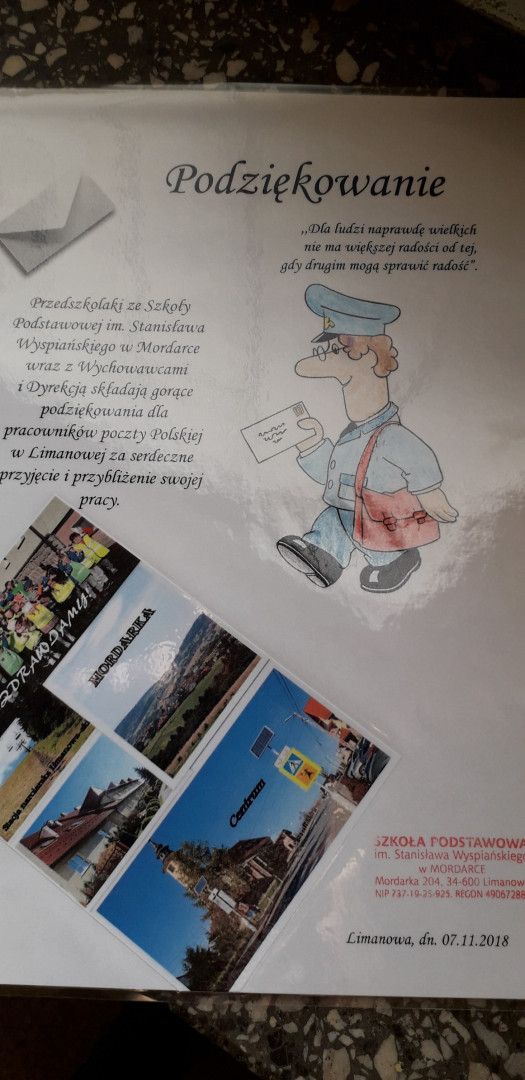 Gorące podziękowania dla pracowników Poczty Polskiej w Limanowej składają wszystkie dzieci oraz wychowawcy.