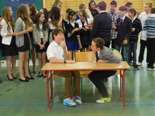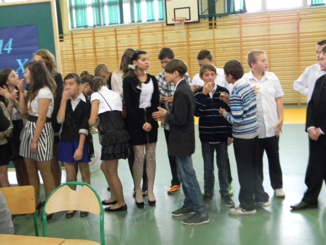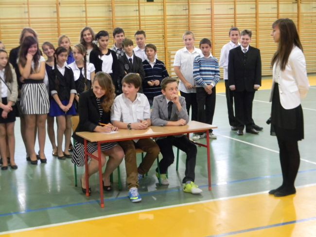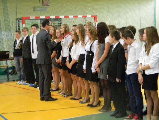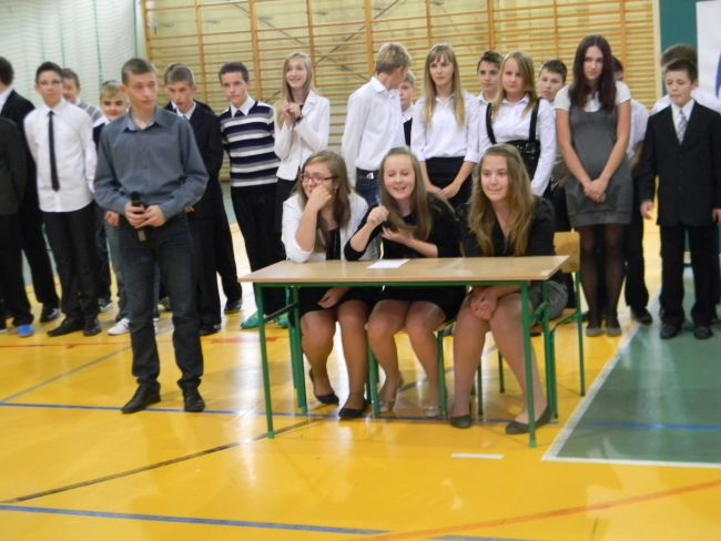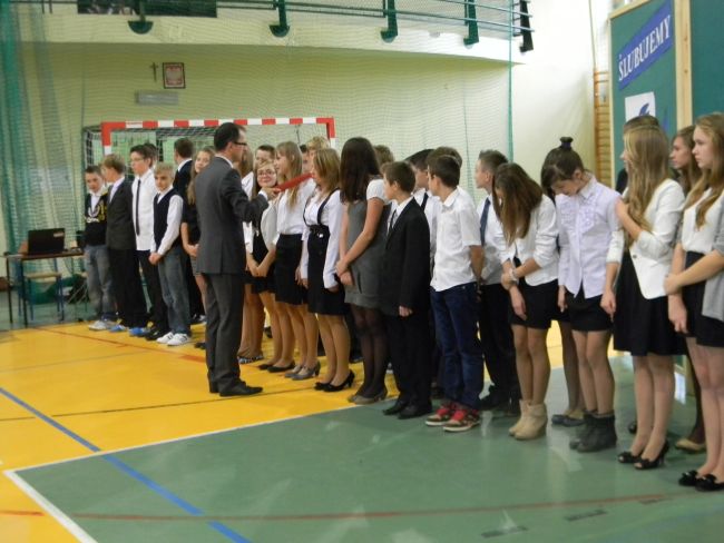 Po złożeniu ślubowania młodzież została pasowana przez dyrektora szkoły  mgr Pawła Ciułę na uczniów gimnazjum. Druga część uroczystości miała charakter mniej oficjalny. Uczniowie przeszli „otrzęsiny”, w trakcie których starsi koledzy sprawdzali ich wiedzę, odwagę i poczucie humoru. Pierwszoklasiści wszystkie próby przeszli pomyślnie i ostatecznie zostali przyjęci w poczet uczniów gimnazjum.