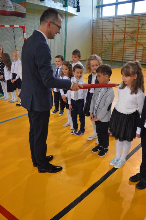 Następnie Pan Dyrektor Paweł Ciuła wielkim ołówkiem dokonał aktu pasowania dzieci na uczniów Szkoły Podstawowej im. Stanisława Wyspiańskiego w Mordarce, po czym wręczył każdemu pierwszakowi pamiątkowy dyplom. Od tej chwili stali się pełnoprawnymi uczniami Szkoły Podstawowej, przez osiem lat tworzyć będą społeczność szkolną oraz będą mieć swoje prawa, ale też obowiązki. Po wykonaniu pamiątkowych zdjęć dzieci udały się do klas, gdzie panie wychowawczynie wręczyły uczniom legitymacje szkolne, a rodzice przygotowali upominki, które umiliły uczniom wyjątkowy dzień.