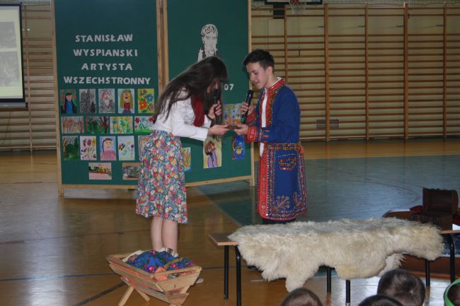 Wiersze Wyspiańskiego zaprezentowali następujący uczniowie: Natalia Odziomek, Marta Szewczyk, Faustyna Opiela ze szkoły podstawowej, Magda Król, Asia Szubryt z gimnazjum. Natalia Sławek przy akompaniamencie Antoniego Króla zaśpiewała poezje patrona.