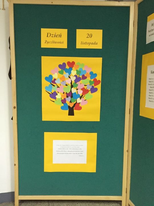 21 listopada to Światowy Dzień Życzliwości. To szczególna okazja, by zastanowić się czy jesteśmy wobec siebie życzliwi. Z czego składa się życzliwość? Wystarczy zsumować uśmiech, miłe słowo i ciepłe spojrzenie. Na co dzień zapominamy o takich gestach. W naszej szkole był on obchodzony po raz pierwszy.