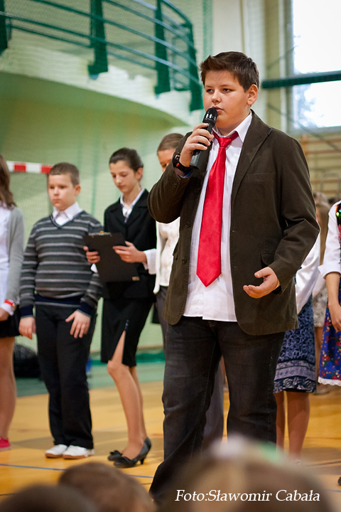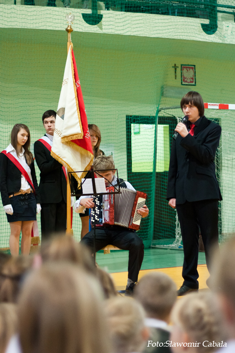 W dniu 12 listopada 2012 roku odbyła się w naszej szkole akademia z okazji dziewięćdziesiątej czwartej rocznicy odzyskania niepodległości. Uczniowie gimnazjum przypomnieli ważne fakty z 1918 roku, kiedy to po 123 latach niewoli Polacy wreszcie mogli powiedzieć, że są u siebie i mieszkają w wolnym kraju. Dziś często nie doceniamy wolności, uznajemy za naturalne posługiwanie się językiem polskim, czytanie dzieł największych polskich autorów, wyznawanie religii, głoszenie poglądów politycznych. Zapominamy, że niecałe sto lat temu groziły za to kary, represje ze strony zaborców. Wolność, niezależność, możliwość kultywowania rodzimej tradycji, naukę historii zawdzięczamy naszym przodkom, którzy przez dziesięciolecia ginęli w powstaniach, walczyli wszelkimi sposobami o polskość. To im poświęcona została ta akademia. W wierszach, pieśniach uczciliśmy pamięć tych, dzięki którym żyjemy dziś w wolnym kraju, dzięki którym Polska znów pojawiła się na mapach Europy. Pamiętajmy o tym nie tylko w dniu święta Odzyskania Niepodległości.