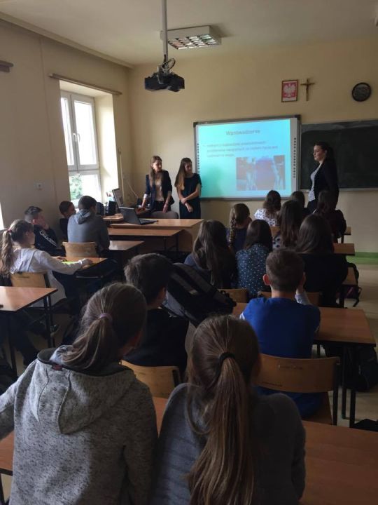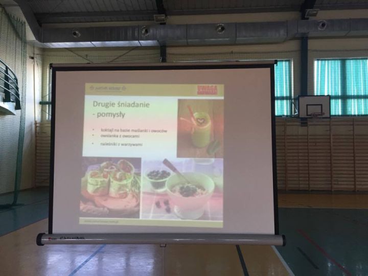 Młodzież bardzo uważnie wysłuchała wskazówek pani dietetyk dotyczących zdrowych zasad odżywiania się. Dodatkowo uczniowie bardzo aktywnie uczestniczyli w prelekcji - zadawali dużo pytań, ale znali również odpowiedzi na pytania zadawane przez prelegentkę.