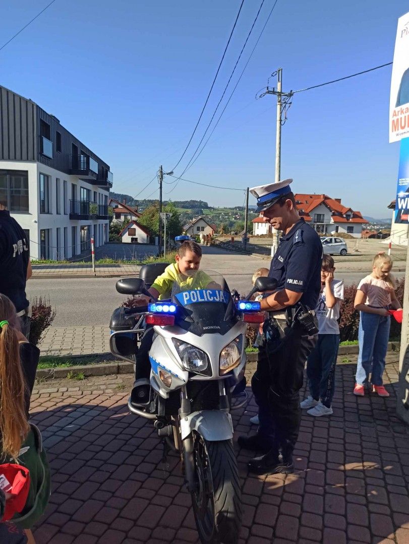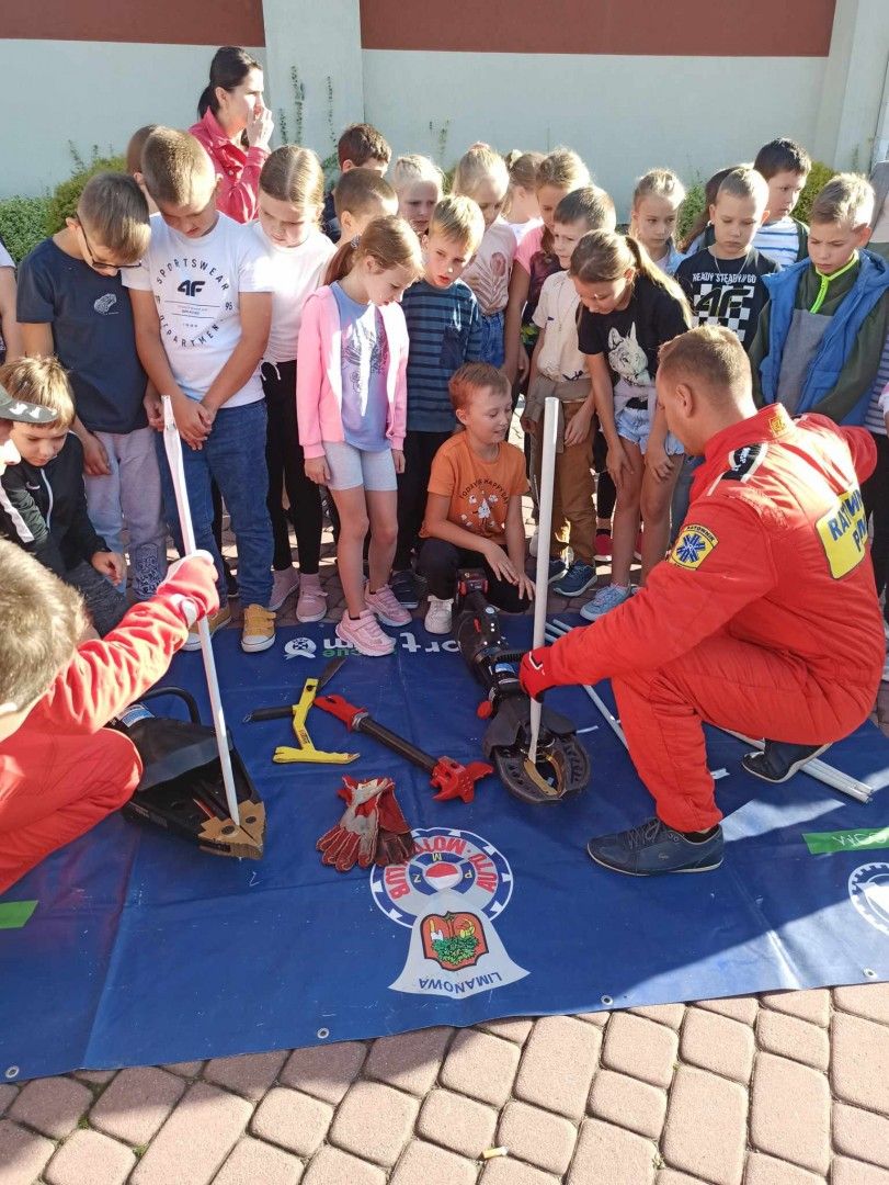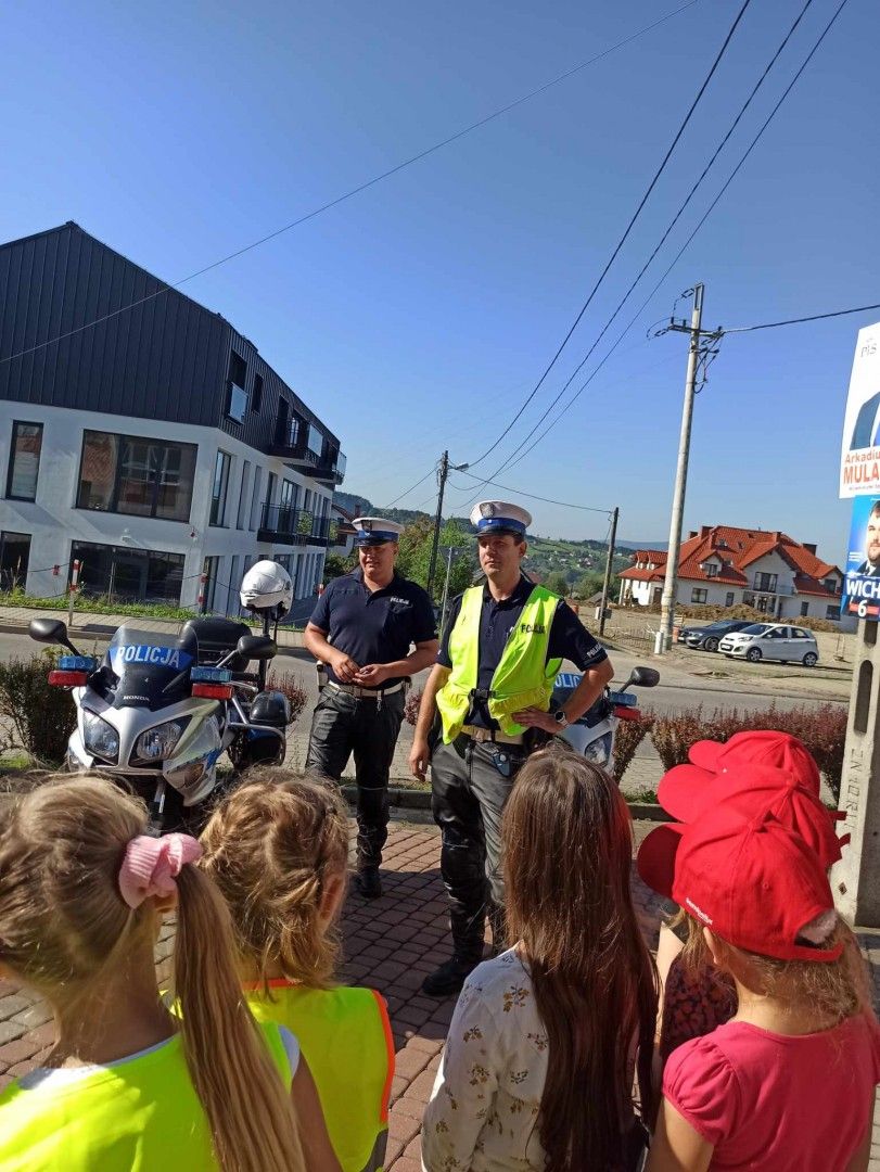 Funkcjonariusze rozmawiali z dziećmi na temat bezpieczeństwa na drodze oraz zachowaniu podczas przejścia przez pasy. Ratownicy omówili również zasady udzielania pierwszej pomocy, prezentowali sprzęt do ratowania życia, który używają podczas wypadków drogowych. Dzięki specjalnym okularom pokazano dzieciom, jak czuje się osoba, która nadużyje alkoholu. Uczniowie otrzymali od ratowników drobne upominki, które będą im przypominać o zachowaniu bezpieczeństwa na drodze. Dzięki uprzejmości funkcjonariuszy policji dzieci mogły wsiąść na motory policyjne i posłuchać ryku silnika. Po przeszkoleniu, dzieci wraz z policjantami przystąpiły do kontroli kierowców. Akcja polegała na zatrzymywaniu pojazdów – kierowcy jadący prawidłowo otrzymywali uśmiechnięte odblaski, a łamiący przepisy karani byli zjedzeniem kawałka cytryny.