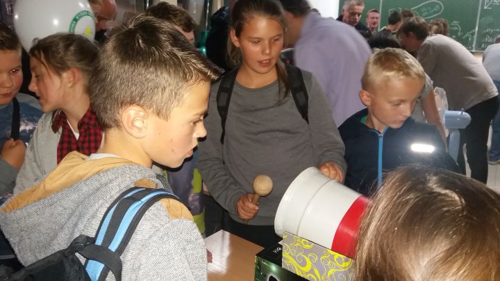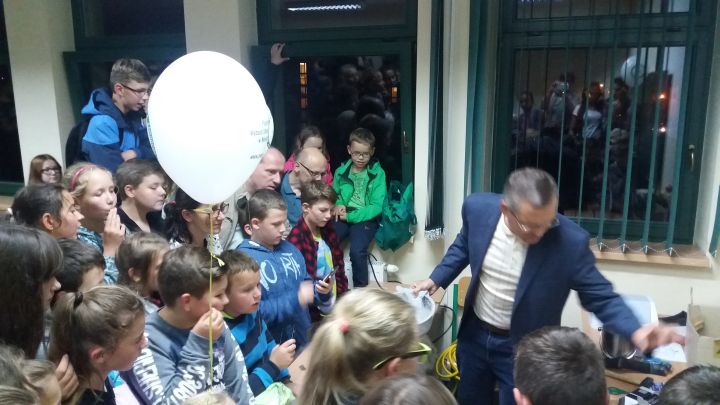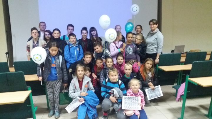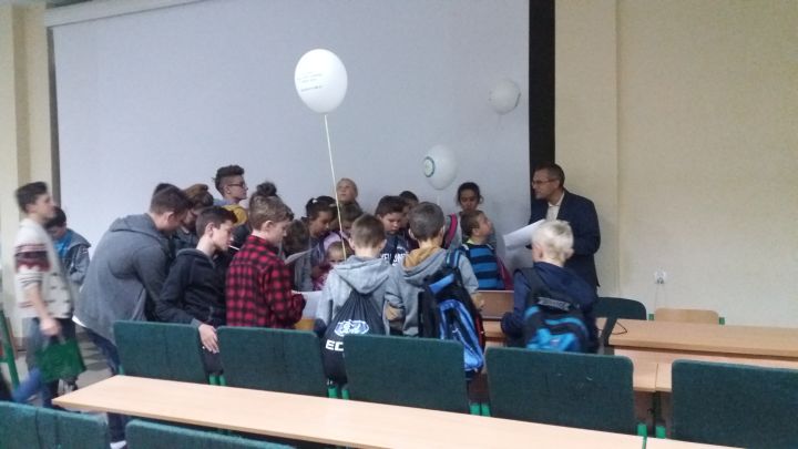 Tak jak w ubiegłych latach uczniowie uczestniczyli w pokazach, eksperymentach, spotkaniach z naukowcami i konkursach. Uczniowie szkoły podstawowej z klasy piątej wzięli udział w konkursie matematycznym uzyskując cenne nagrody. Zajęli: II miejsce – Patrycja Nawalaniec  kl. Vb, III  miejsce – Faustyna Opiela kl. Va. Zaś uczniowie gimnazjum wzięli udział w konkursie wiedzy technicznej. Trójka z nich zakwalifikowała się do finału. Po konkursie miała miejsce wizyta w Laboratorium Automatyki i Robotyki, gdzie z wielkim zaciekawieniem uczniowie obejrzeli pokaz programowalnych robotów.  Pod okiem przewodnika naukowego sprawdzili  na modelach sterowanie tymi robotami i funkcjonowanie linii produkcyjnej. Następnie grupa udała się do sali doświadczeń fizycznych. Na pokazy trzeba było długo czekać, ale było warto! Jak zwykle działy się tam niesamowite rzeczy. Najciekawszy okazał się pokaz z ciekłym azotem prowadzony przez dr Witolda Przygodę. Uczniowie byli zachwyceni, gdy prowadzący w trakcie pokazu różę i kapustę zamienił w strukturę podobną do szkła. Rzucone na ziemię rozbiły się na kawałki. Po pokazie uczniowie mieli okazję sami sprawdzić, jak działają prawa fizyki. Kolejnym punktem naszej wycieczki była wizyta w sali „Bezpieczeństwo w ruchu drogowym”. Uczniowie korzystali z symulatora gwałtownego hamowania oraz z okularów, które zaburzały pole widzenia. Mieli przy tym dużo radości i zabawy.