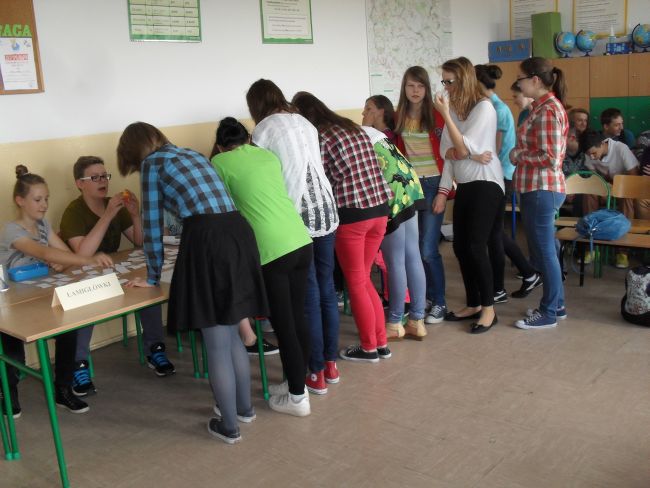 Natomiast w czasie długich przerw przeprowadzana była sonda. Starsi uczniowie sprawdzali znajomość tabliczki mnożenia wśród kolegów i pracowników szkoły. Poprawne odpowiedzi nagradzane były cukierkiem. Pan Dyrektor i pani sekretarka również brali udział w sondzie i udzielili bezbłędnej odpowiedzi.