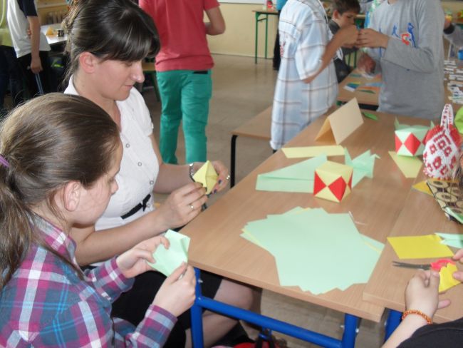 W dniach 26-28 maja 2014r. w naszej szkole zorganizowane zostały Dni Matematyki. W pierwszy dzień odbył się szkolny konkursy wiedzy matematycznej „Myślę i liczę” dla klas IV-VI szkoły podstawowej oraz I-III gimnazjum. Dzieci z klas I-III szkoły podstawowej wzięły udział w konkursie plastycznym „Świat z figur geometrycznych”. Drugiego i trzeciego dnia odbywały się pokazy i warsztaty dla wszystkich klas szkoły podstawowej i gimnazjum.