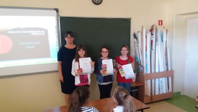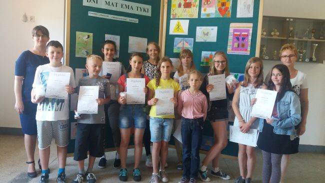 W dniach 15-17 czerwca 2016r. w naszej szkole zorganizowane zostały Dni Matematyki. Tematem przewodnim tegorocznych dni była symetria. Dzieci z klas I-III szkoły podstawowej przygotowały prace plastyczne na konkurs „Odbicia lustrzane wokół nas”. Uczniowie z klas IV – VI przygotowali prezentacje multimedialne na temat „Symetria wokół nas”. Prace wykonane przez uczniów zdobiły korytarz w czasie Dni Matematyki. Jak co roku uczniowie z klas IV – VI i gimnazjum wzięli udział w rywalizacji rówieśniczej w czasie szkolnego konkursu „Myślę i liczę”. Zwycięzcy poszczególnych konkursów zostali nagrodzeni dyplomami i matematycznymi upominkami.