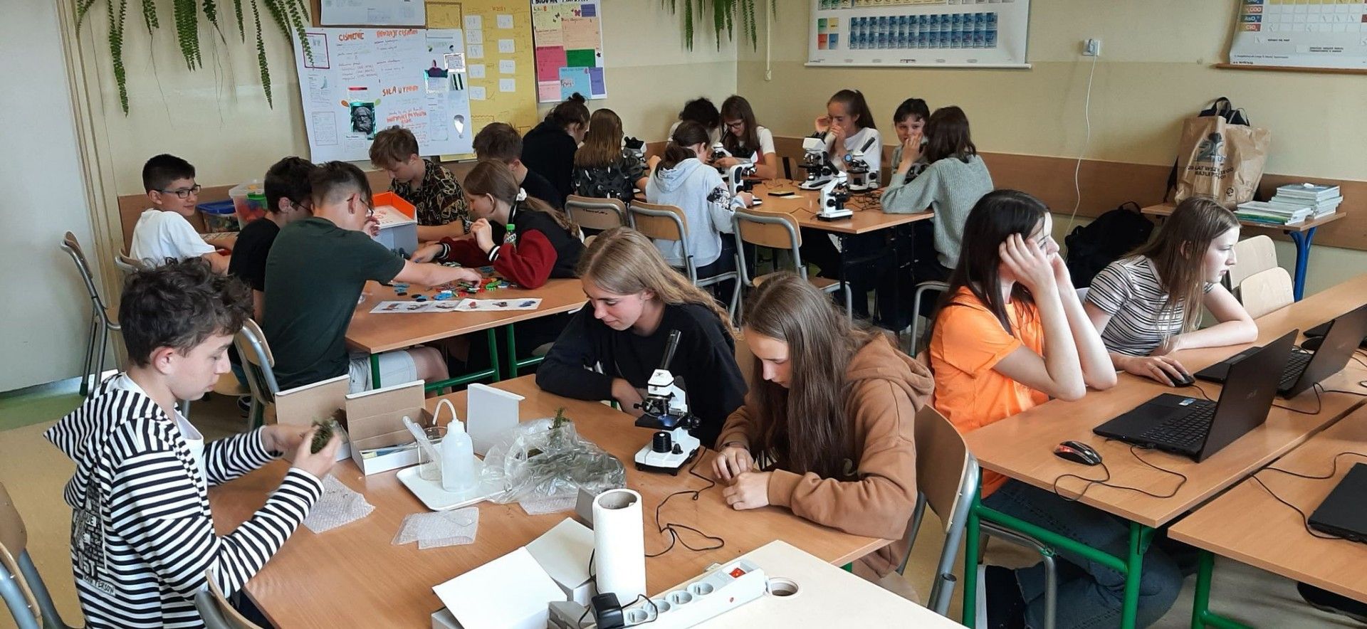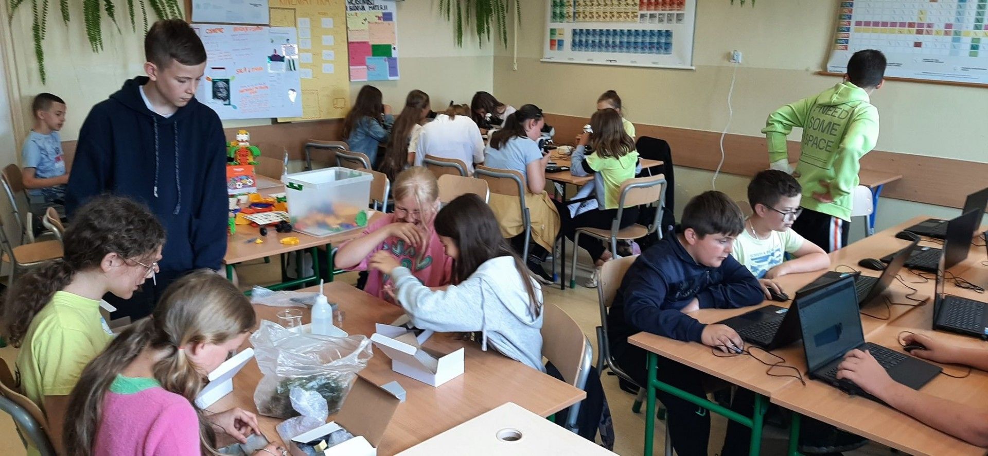 Na stoiskach z biologii uczniowie wykonywali samodzielnie preparaty z mchu, które następnie oglądali pod mikroskopem. Obejrzeli także preparaty trwałe: tkanki roślinne i zwierzęce oraz narządy. Dużym zainteresowaniem cieszyły się klocki konstrukcyjne do projektowania maszyn, zwierząt, robotów oraz stanowiska komputerowe do projektowania obiektów 3-D w Skrimarket pod druk 3D.