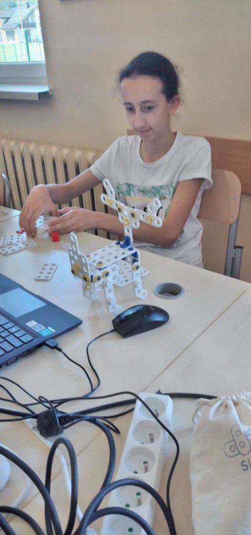 Dla uczniów przygotowane były również dobrze im znane klocki SkriKit. Budując figury uczniowie mogli korzystać z gotowych projektów, dostępnych na Skrimarket. Uczniowie korzystali również z kreatora Skribotów na Skrimarket. Dzięki kreatorowi mogli odwzorowywać klocki SkriKit i wiele dodatkowych części konstrukcyjnych. Kątownik, śruba, nakrętka, to wszystko mogli dowolnie ze sobą zestawiać, łączyć w wirtualnym kreatorze konstrukcji zintegrowanym z drukarką 3D Skinter Creator. Uczestnicy zajęć testowali również roboty.