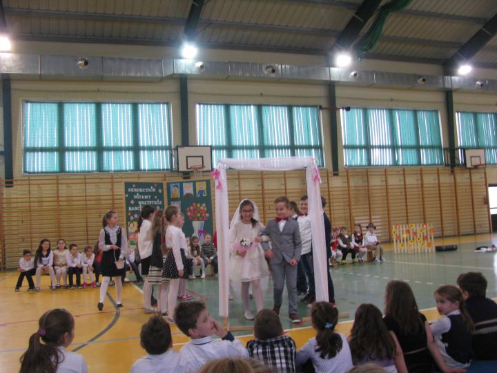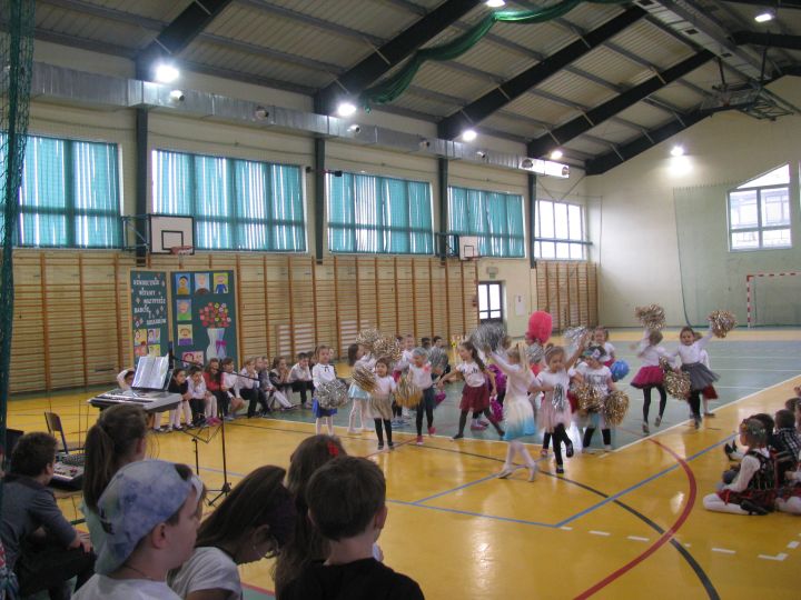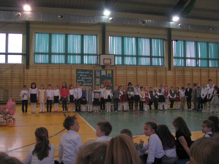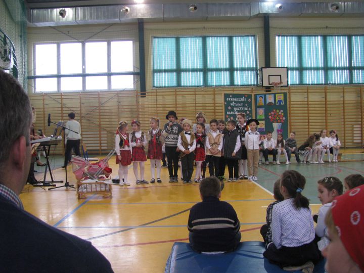 Frekwencja była wspaniała. Dziękujemy im za to. Gorące słowa podziękowania należą się również rodzicom, którzy nie tylko dowieźli honorowych gości na uroczystość, ale okazali dużą pomoc w przygotowaniu i przeprowadzeniu imprezy. Najlepiej wyrażą to słowa piosenki: „Jak to dawniej było każdy z was pamięta Bo cząstka historii w rodzinie zamknięta. Babcia ciasto piecze, wesoło zagada O rodzinnych dziejach wnukom opowiada. A kochany dziadek w bujanym fotelu Pokazuje zdjęcia mych kuzynów wielu. Rodzinne tradycje pielęgnować trzeba Babcia, mama, wnuczka, inaczej się nie da. Dziś wam dziękujemy nasi przyjaciele Tobie Babciu, Dziadku pomyślności wiele”.