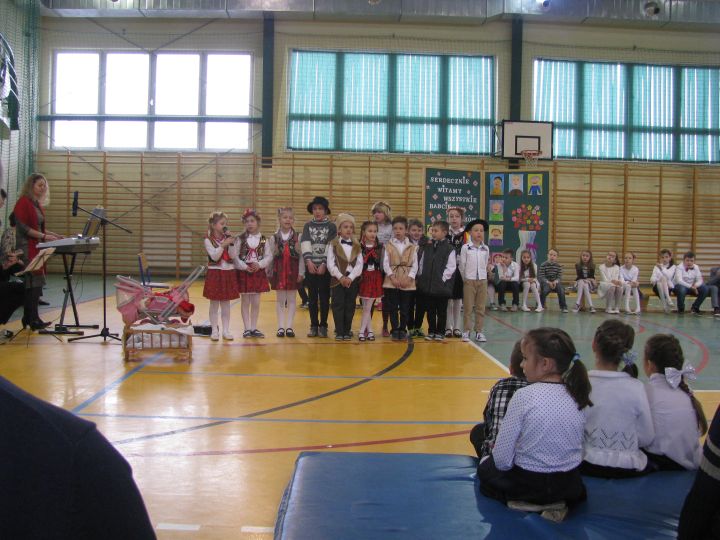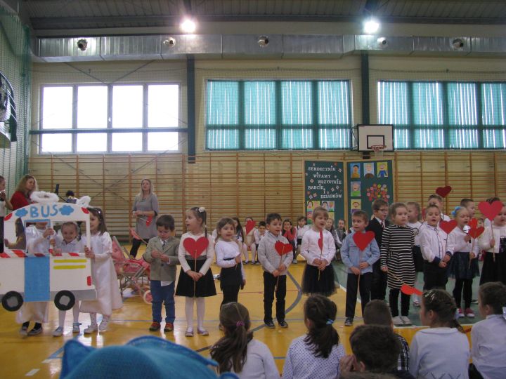 Dzień Babci i Dziadka to najpiękniejsze dni w roku. W tych dniach Babcie i Dziadkowie obdarzani są szczególnymi wyrazami miłości i szacunku. Święto Babci i Dziadka to jedna z uroczystości, która stała się tradycją naszej szkoły, a organizowana jest przez dzieci klas 0 – III wraz z wychowawcami. W tym roku ta miła uroczystość odbyła się 24 stycznia. Tego dnia zaproszeni dziadkowie licznie przybyli, aby podziwiać występy swoich wnucząt. Zebranych seniorów i wszystkich gości serdecznie powitał pan Dyrektor szkoły, składając życzenia. W pięknie udekorowanej sali uczniowie przedstawili program artystyczny. Życzenia, wiersze, piosenki, tańce i oczywiście uśmiechy - tym wszystkim obdarowani byli niecodzienni goście.