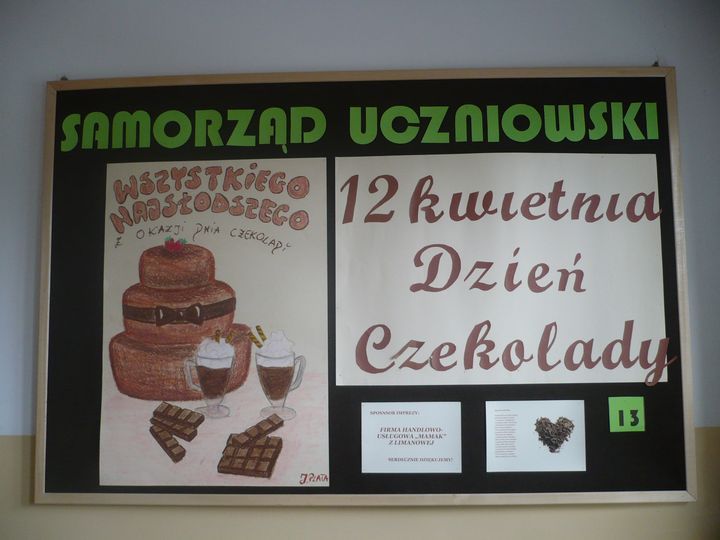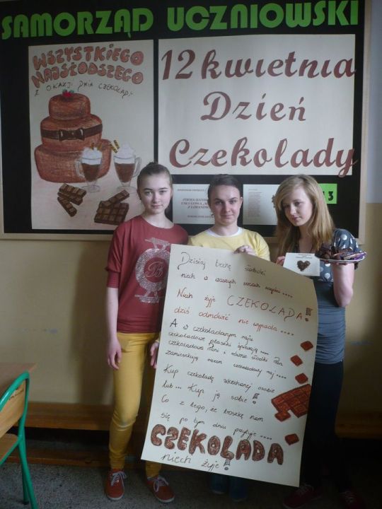 Szczególne podziękowania dla uczennic kl. III B: Natalii Wójcik, Anny Chudy, Beaty Chudej, Pauliny Tokarczyk za ogromne zaangażowanie w organizację i przeprowadzenie Dnia Czekolady.