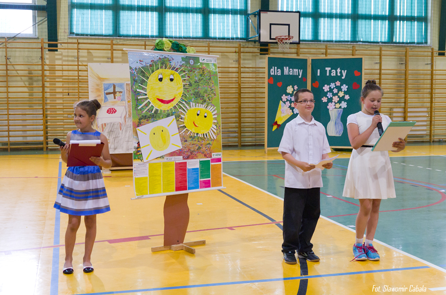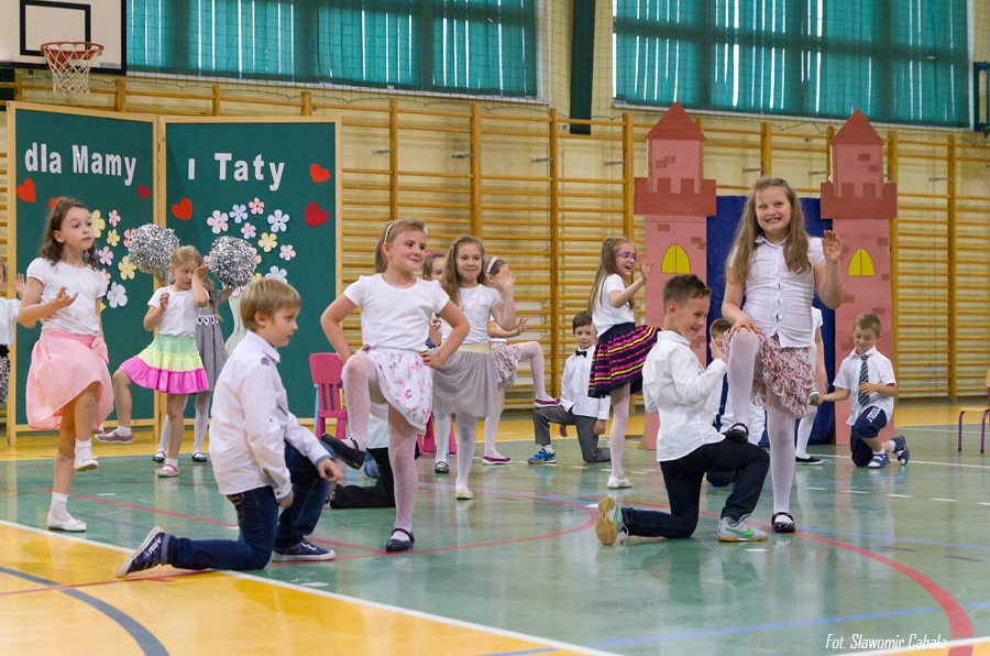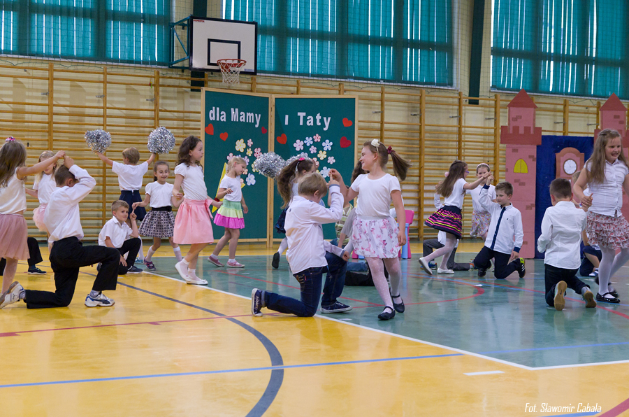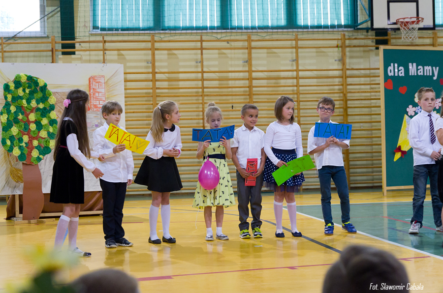 W dniu 31 maja w naszej szkole uczniowie klas 0-III uroczyście świętowali Dzień Mamy i Taty. Była to okazja do zaprezentowania się naszych dzielnych artystów przed najwspanialszą i najbliższą ich sercu widownią. Mimo wielkiej tremy zarówno maluszki, jak i uczniowie starszych klas dali z siebie wszystko. Dla naszych wychowanków impreza ta była znakomitą okazją do pokazania się z jak najlepszej strony oraz pochwalenia się swym talentem: muzycznym, plastycznym, recytatorskim, aktorskim, jak i tanecznym. Dla dzieci było to przeżycie, dzięki któremu poczuły się ważne, zdolne i mogły być z siebie dumne. Pełne zapału i zaangażowania recytowały okolicznościowe wiersze, śpiewały  piosenki oraz tańczyły.