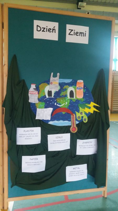 W dniu 7 czerwca w naszej szkole odbył się Dzień Ziemi, który poprzedzony był obchodami tygodnia ekologicznego. Obejmował on analizę zagadnień ekologicznych na lekcjach biologii i przyrody, konkurs ekologiczny, konkurs plastyczny, jak też akademię przygotowaną przez uczniów klasy III B gimnazjum do scenariusza napisanego przez naszego zdolnego ucznia tejże klasy- Kacpra Łyszczarza.