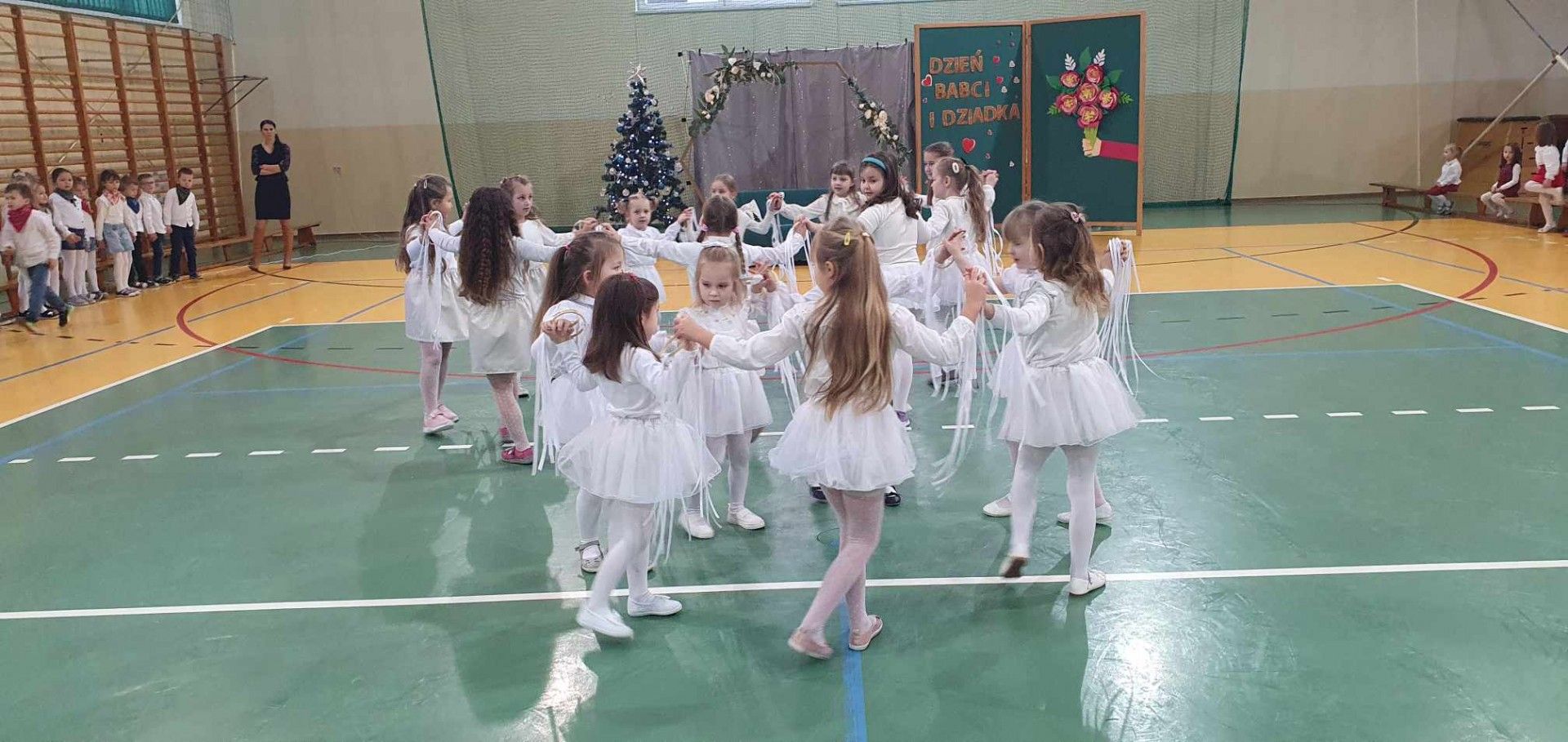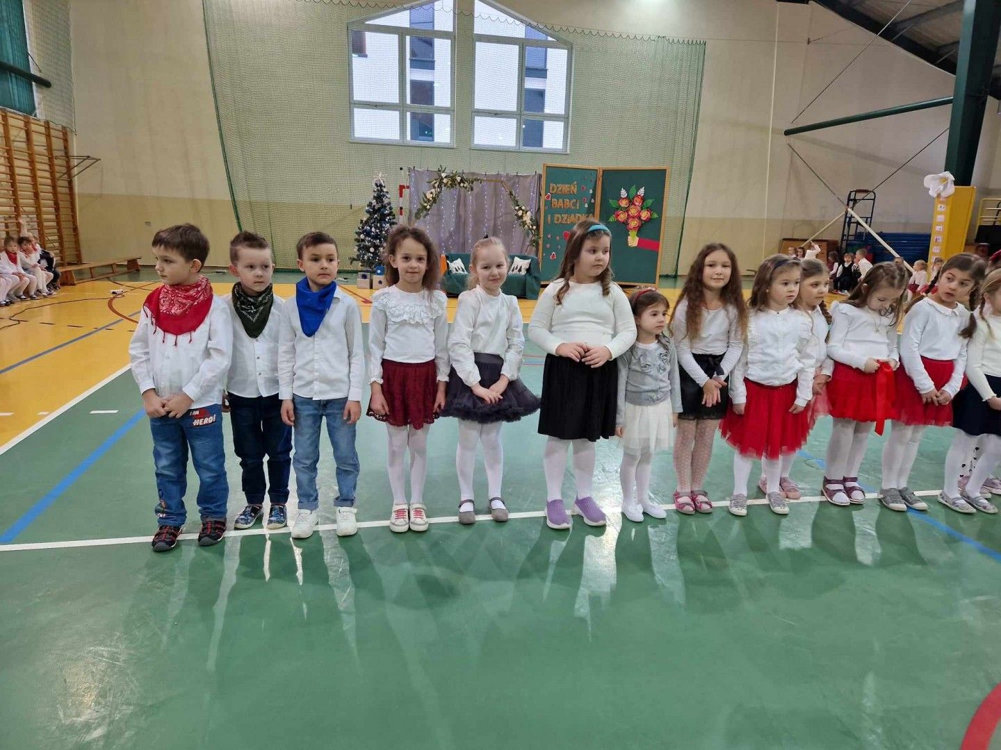 W końcu nadszedł kres tych przygotowań i z wielką radością mogliśmy zaprezentować swój występ najdroższym oraz najukochańszym Dziadkom. Towarzyszyły temu ogromne emocje, radość mieszkała się z ekscytacją i niepewnością. Z okazji tego święta do naszej szkolnej hali gimnastycznej licznie przybyli zaproszeni goście. Uroczystość otworzył Pan Dyrektor, przywitał przybyłych gości, złożył życzenia Babciom oraz Dziadkom i zaprosił ich na część artystyczną w wykonaniu dzieci. Występ wypadł przepięknie. Dzieci stanęły na wysokości zadania i zaprezentowały się z najlepszej strony. Jesteśmy z nich bardzo dumne. Nie zabrakło również wspólnych kolęd, zdjęć oraz czułości ze strony dziadków.
