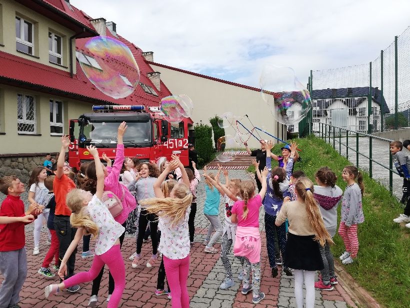 Na imprezę przybyli wyjątkowi goście, m.in.: policjanci, strażacy, którzy zapewnili milusińskim szereg atrakcji, co cieszyło się ogromnym powodzeniem. Dzięki ich uprzejmości dzieciaki mogły poczuć smak wielkiej przygody. Obejrzały samochody ratunkowe. Żądne wiedzy i dla zaspokojenia własnej ciekawości, mogły zapoznać się z pojazdami od środka, jak też zasiąść za ich kierownicą. Atrakcją okazała się możliwość użycia sygnałów alarmowych oraz korzystania z policyjnego megafonu. Dzieci nie tylko obejrzały samochody straży pożarnej i policji, ale dowiedziały się, na czym polega ich niebezpieczna praca oraz co zrobić żeby w przyszłości wykonywać ten zawód.