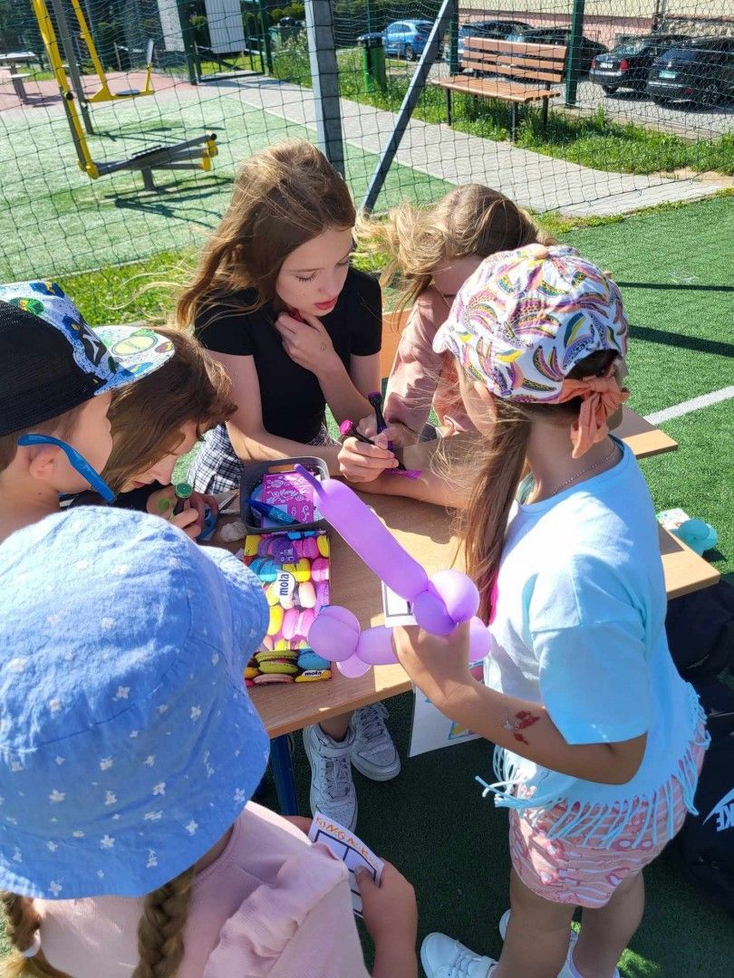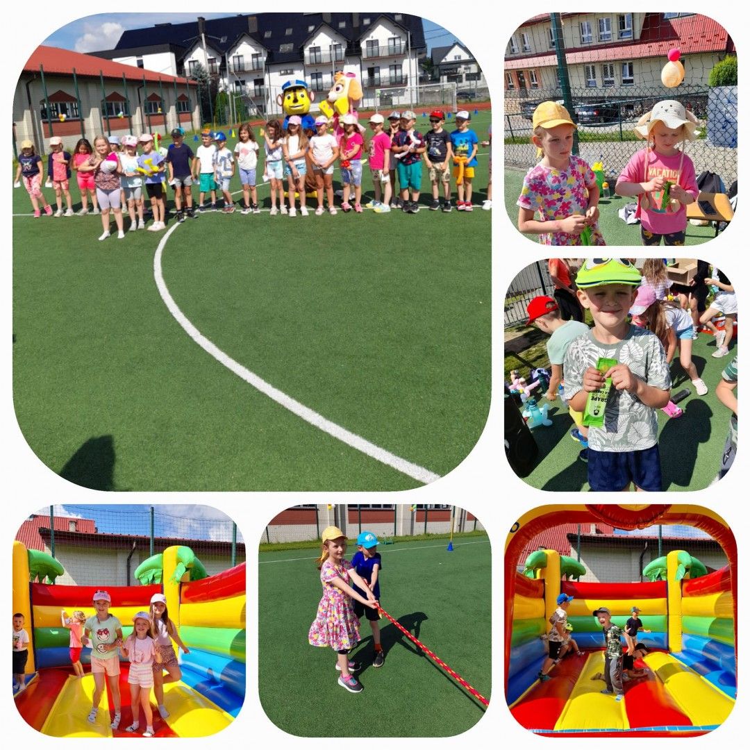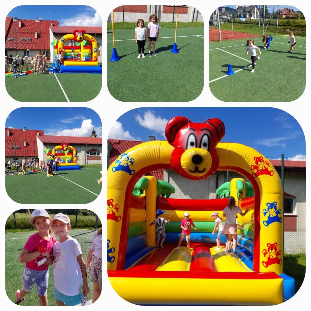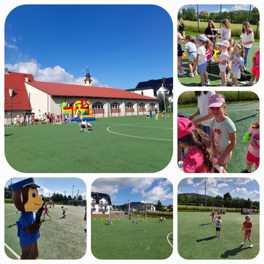 Były tańce, zabawy z Cheesem i Sky - bohaterami bajki „Psi Patrol”, lody, słodkości, pyszny poczęstunek, zamek dmuchany, kolorowe balony oraz tatuaże. Tor przeszkód, przeciąganie liny oraz wiele innych sportowych konkurencji. W organizacji bardzo pomogli nam uczniowie klas 7 i 8, których zaangażowanie w dzisiejszy dzień było nieocenione, bardzo Wam za to dziękujemy! Ogromne podziękowania składamy również naszym wspaniałym Darczyńcom: