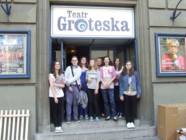 9 maja 2014r. grupa teatralna „M.A.S.K.A”   z naszej szkoły  wystawiła  na deskach teatru „Groteska”  spektakl „ W 30 minut dookoła świata”. Autorem i głównym reżyserem tego przedstawienia była uczennica klasy II gimnazjum Julia Niemiec.  Występ w tak znanym teatrze  był  możliwy dzięki uzyskaniu tytułu laureata  i zdobyciu głównej nagrody (udziału w wakacyjnych warsztatach teatralnych) w II Festiwalu Teatrów Szkolnych Polski Południowej im. Felicjana Dulskiego  zorganizowanym przez Centrum Sztuki Współczesnej „Solvay”   w Krakowie.