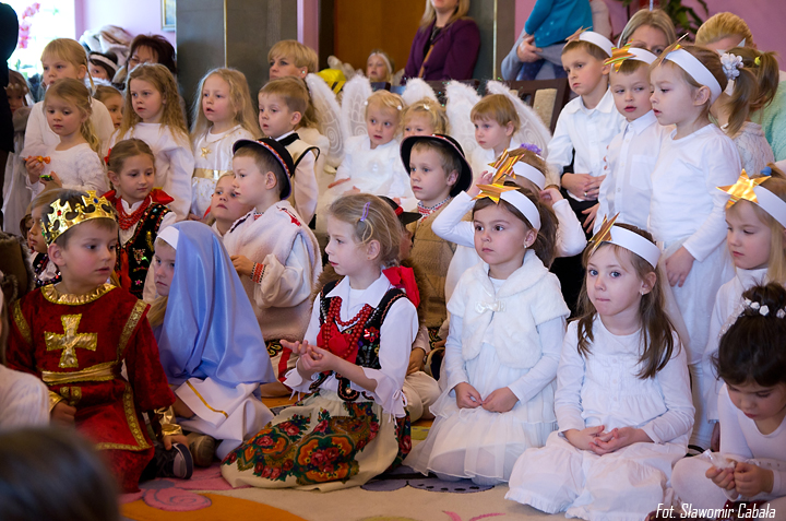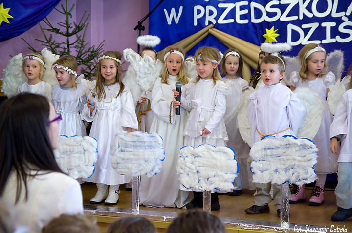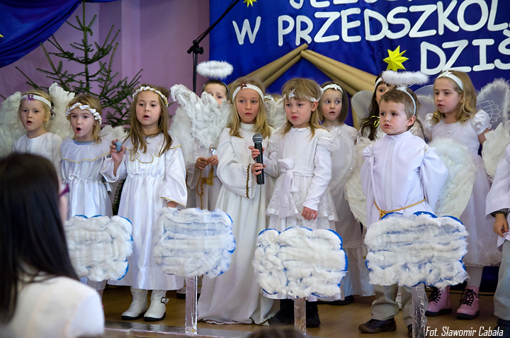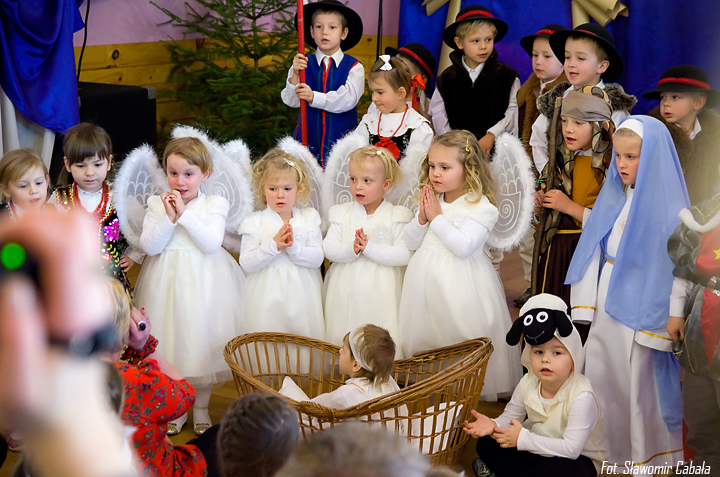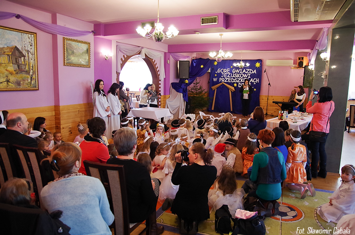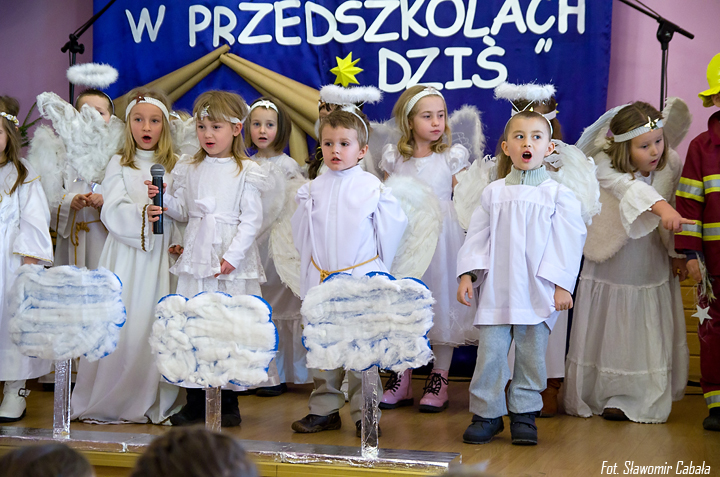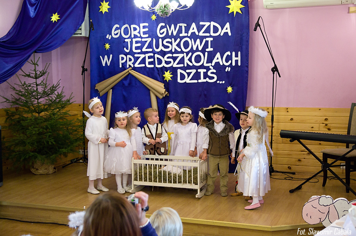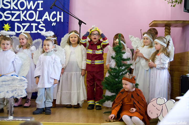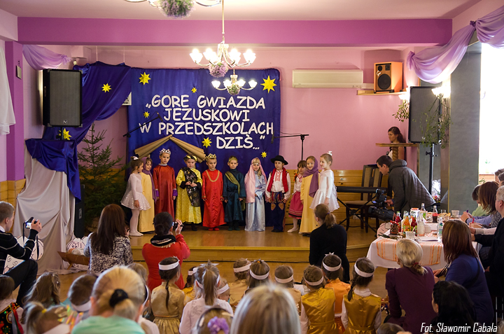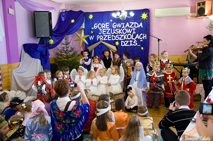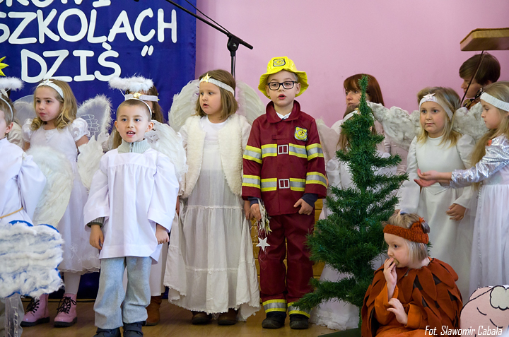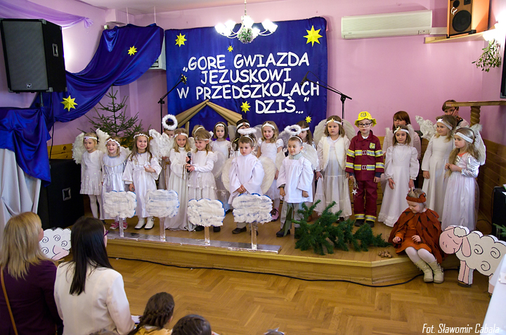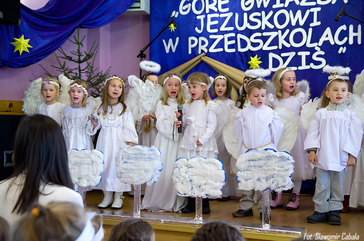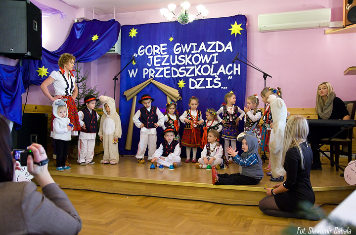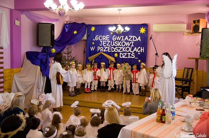 Dnia  18.12.2013 r. grupa dzieci z oddziału przedszkolnego wzięła udział w I Międzyprzedszkolnym Konkursie Kolęd i Pastorałek, pod hasłem „GORE GWIAZDA JEZUSKOWI W PRZEDSZKOLACH DZIŚ”, zorganizowanym przez Niepubliczne Przedszkole Integracyjne „Chatka Małego Skrzatka" w Mordarce. Dzieci prezentowały przygotowane kolędy w Domu Weselnym „Walek” w Mordarce. Nasze przedszkolaki zaśpiewały pastorałkę pt. „Nie miały Aniołki”.