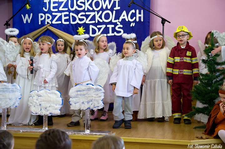 Nasze przedszkolaki zaśpiewały pastorałkę pt. „Nie miały Aniołki”. Dzieci wykazały się nie tylko umiejętnościami wokalnymi, ale także aktorskimi i umiejętnością gry na instrumentach. Szczególne podziękowania należą się rodzicom, którzy pomogli
