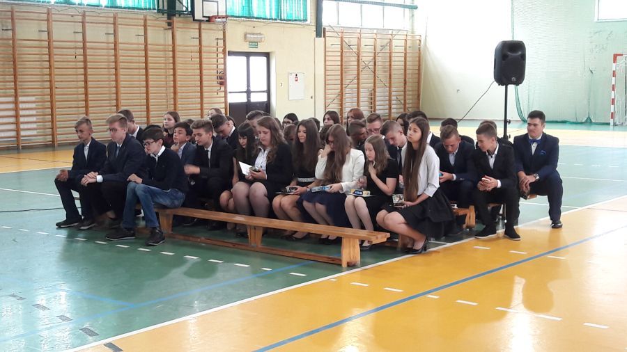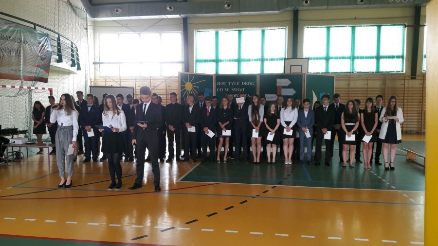 Uroczystość kończyła część oficjalna, podczas której trzecioklasiści przekazali sztandar szkoły swoim młodszym kolegom, złożyli uroczyste ślubowanie, zostali pożegnani przez kolegów z klas drugich. Część oficjalną kończyło wręczenie absolwentom, nagród i świadectw. Nie dość powiedzieć, że był to zasłużony moment zbierania plonów. Wielu było dumnych ze swoich osiągnięć. 12 – nastu absolwentów zostało nagrodzonych świadectwem z wyróżnieniem, wielu nagrodami za osiągnięcia w konkursach przedmiotowych, artystycznych i sportowych. Duża, ośmioosobowa grupa spośród absolwentów działała aktywnie w Szkolnym Kole „Caritas” i liczą, że znajdą swoich następców.