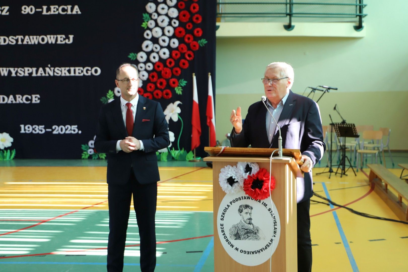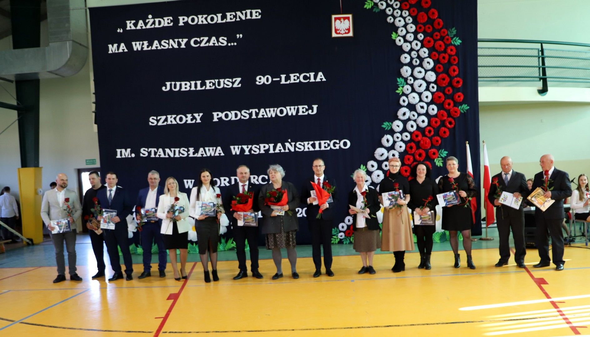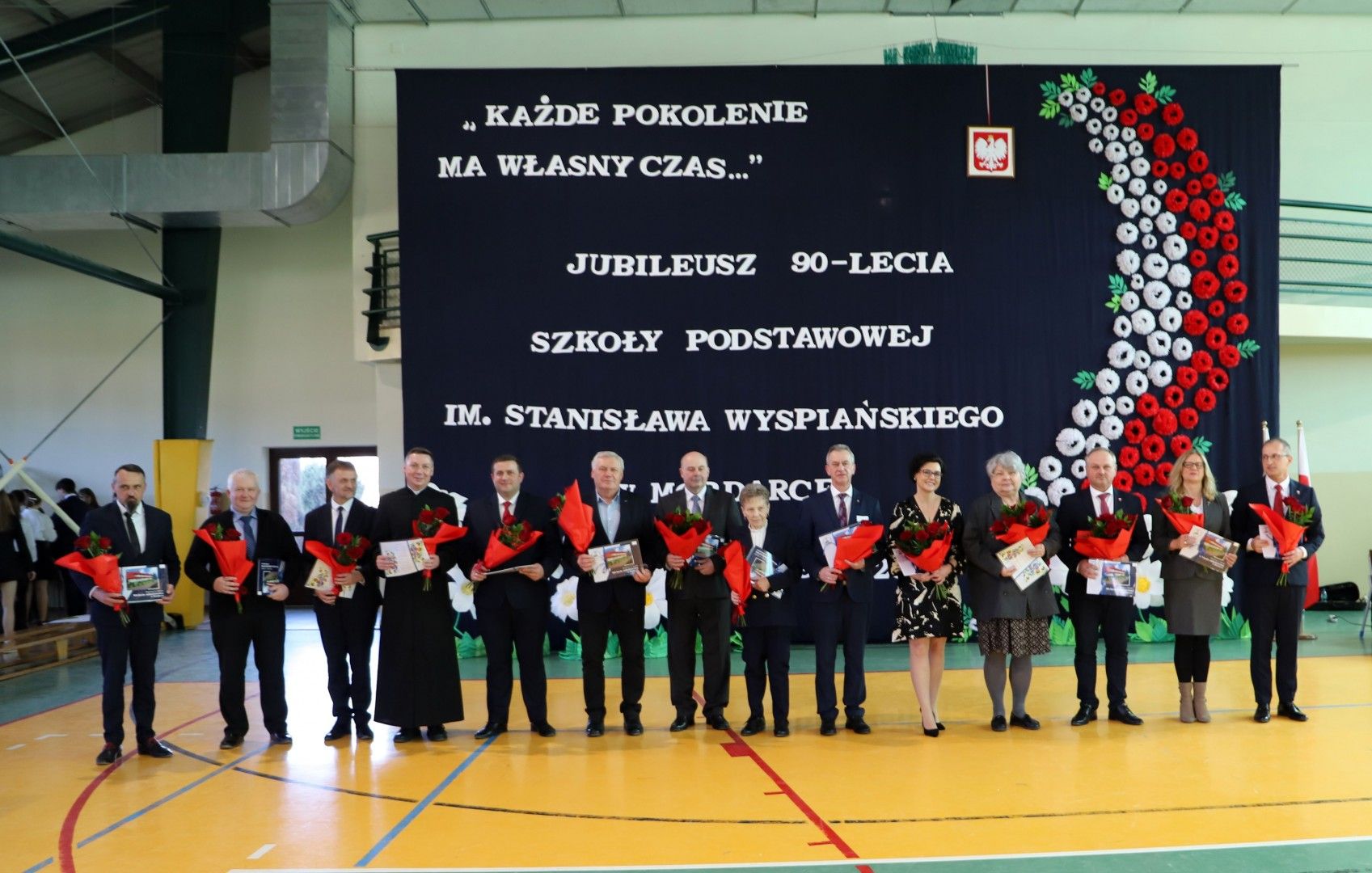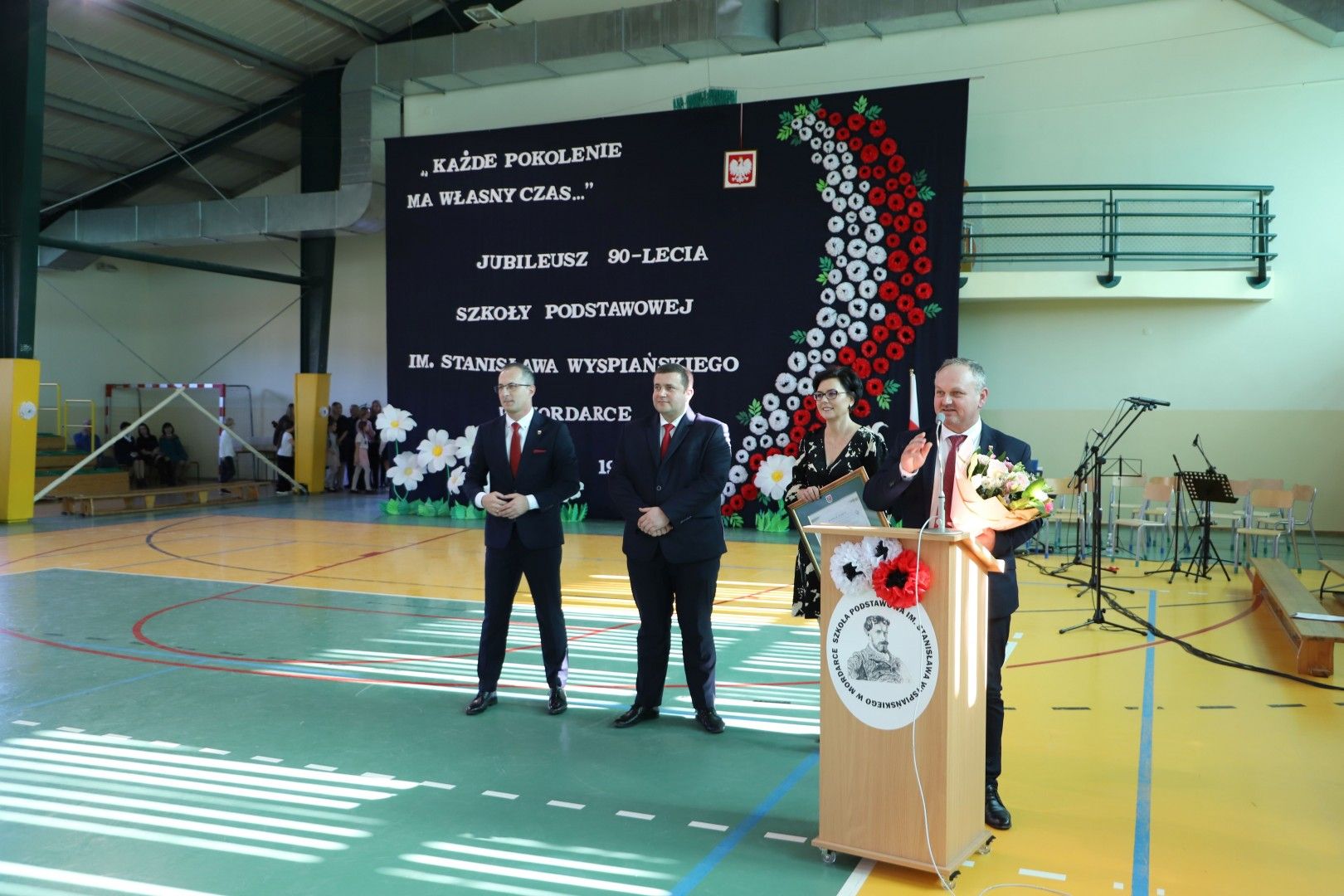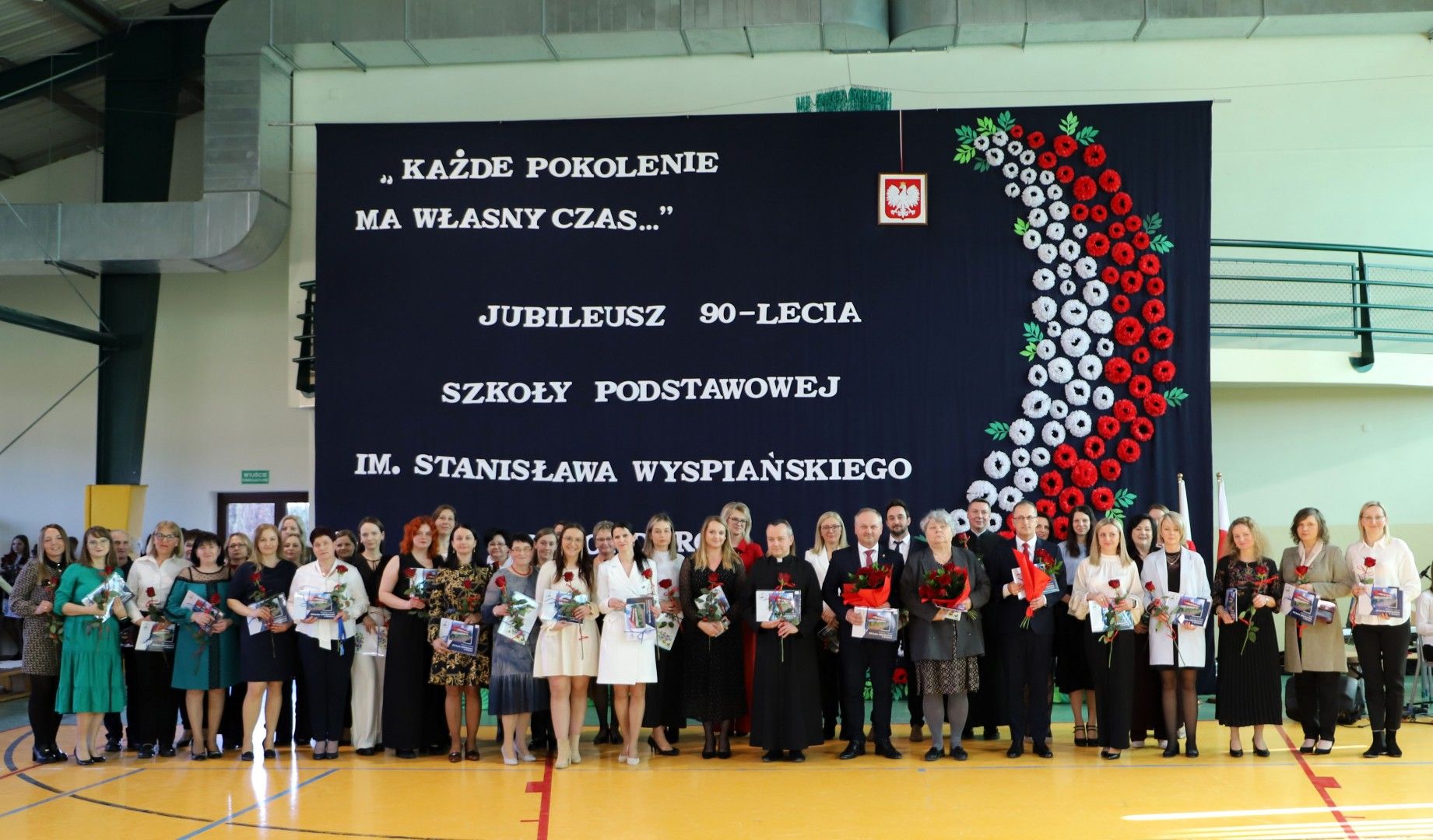 Wszystkich zebranych gości powitał Dyrektor Szkoły Pan Paweł Ciuła, który powiedział: „Dzisiejszy dzień to święto naszej szkoły, naszej społeczności i naszego dziedzictwa – moment, w którym spoglądamy wstecz na to, co udało się osiągnąć i patrzymy z nadzieją w przyszłość. 90 lat to ogromny kawałek historii, w którym nasza szkoła była nie tylko miejscem nauki, ale także sercem życia społecznego, kulturalnego i wychowawczego naszej miejscowości. Każda klasa, każdy dzwonek, każda lekcja to cegiełka w budowaniu tej wspólnoty. Dzięki zaangażowaniu wielu pokoleń nauczycieli, uczniów, rodziców i przyjaciół szkoły, nasza placówka jest miejscem, które nieustannie inspiruje do zdobywania wiedzy, rozwijania pasji i budowania trwałych wartości”.