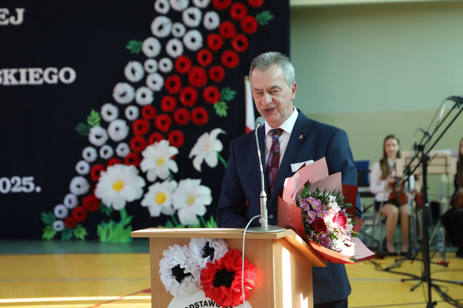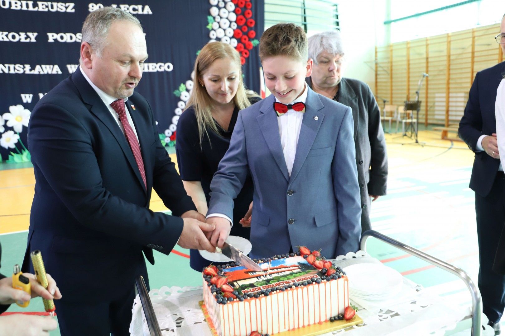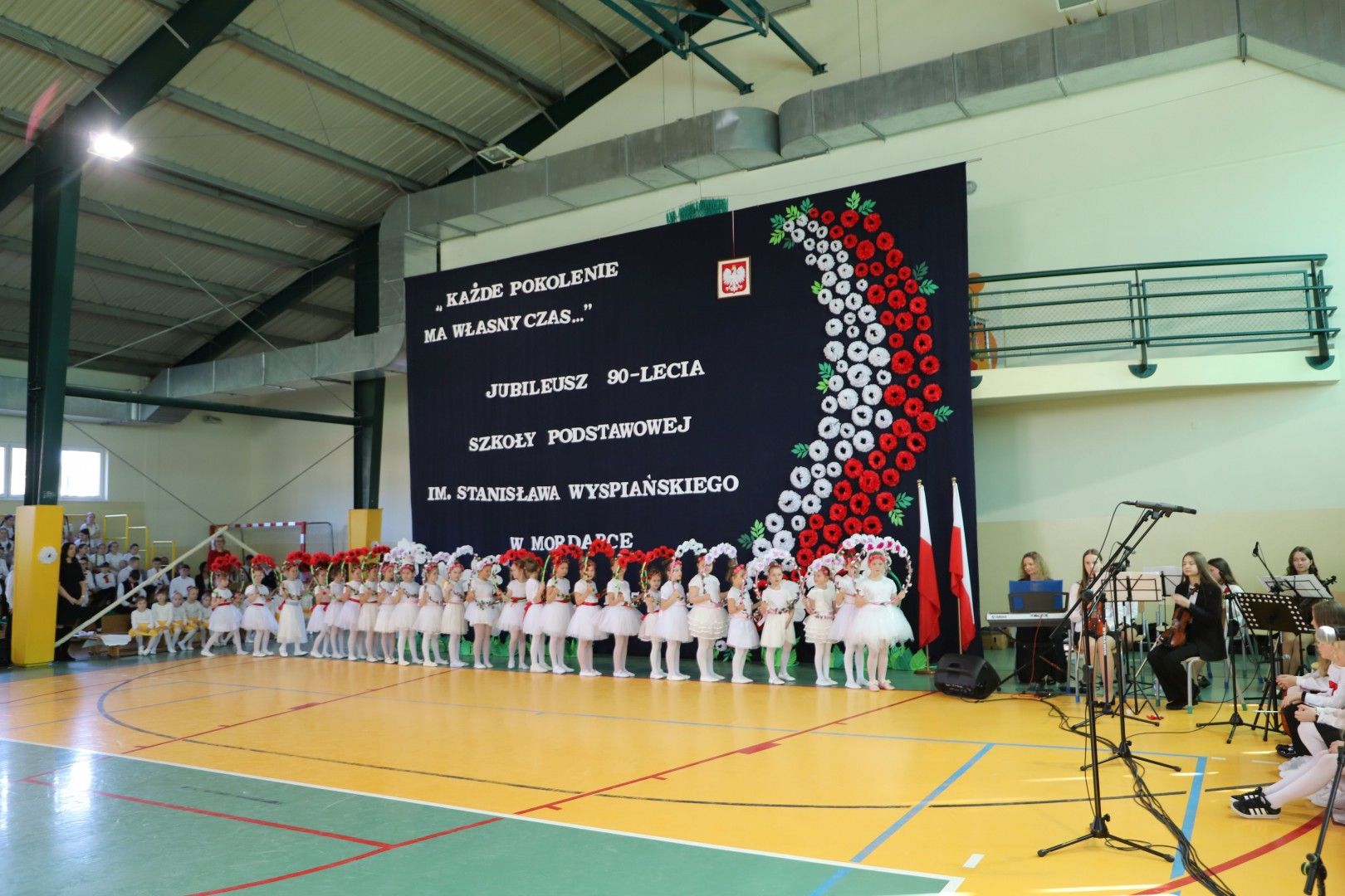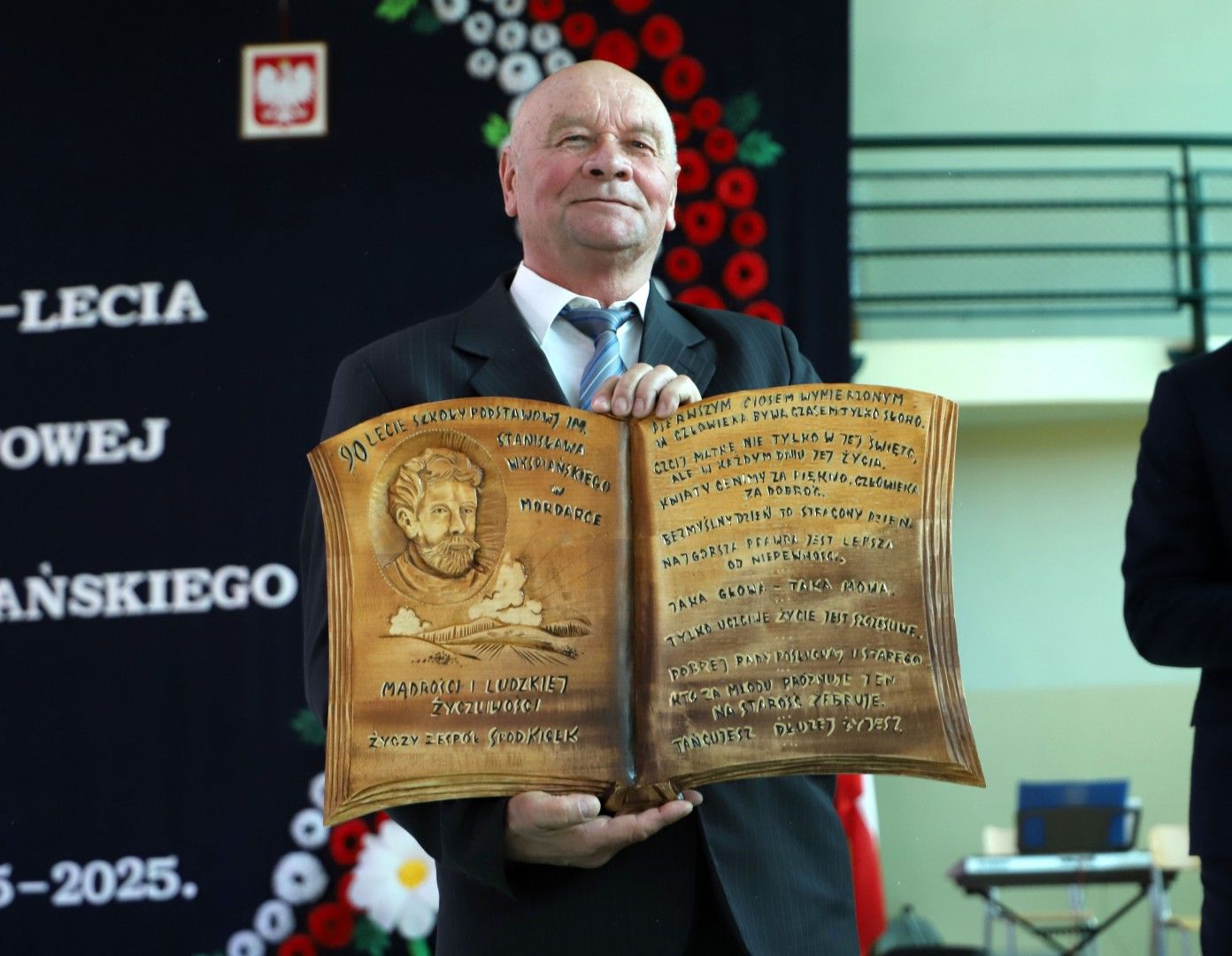 Wszystkich zebranych gości powitał Dyrektor Szkoły Pan Paweł Ciuła, który powiedział: „Dzisiejszy dzień to święto naszej szkoły, naszej społeczności i naszego dziedzictwa – moment, w którym spoglądamy wstecz na to, co udało się osiągnąć i patrzymy z nadzieją w przyszłość. 90 lat to ogromny kawałek historii, w którym nasza szkoła była nie tylko miejscem nauki, ale także sercem życia społecznego, kulturalnego i wychowawczego naszej miejscowości. Każda klasa, każdy dzwonek, każda lekcja to cegiełka w budowaniu tej wspólnoty. Dzięki zaangażowaniu wielu pokoleń nauczycieli, uczniów, rodziców i przyjaciół szkoły, nasza placówka jest miejscem, które nieustannie inspiruje do zdobywania wiedzy, rozwijania pasji i budowania trwałych wartości”.