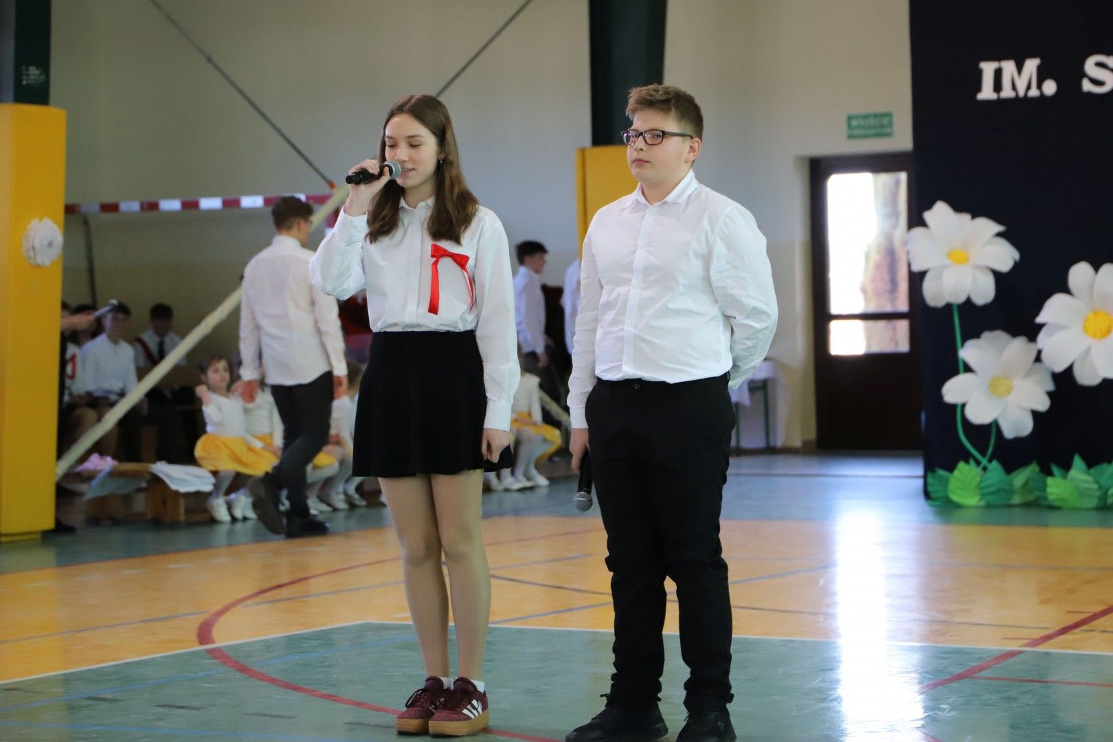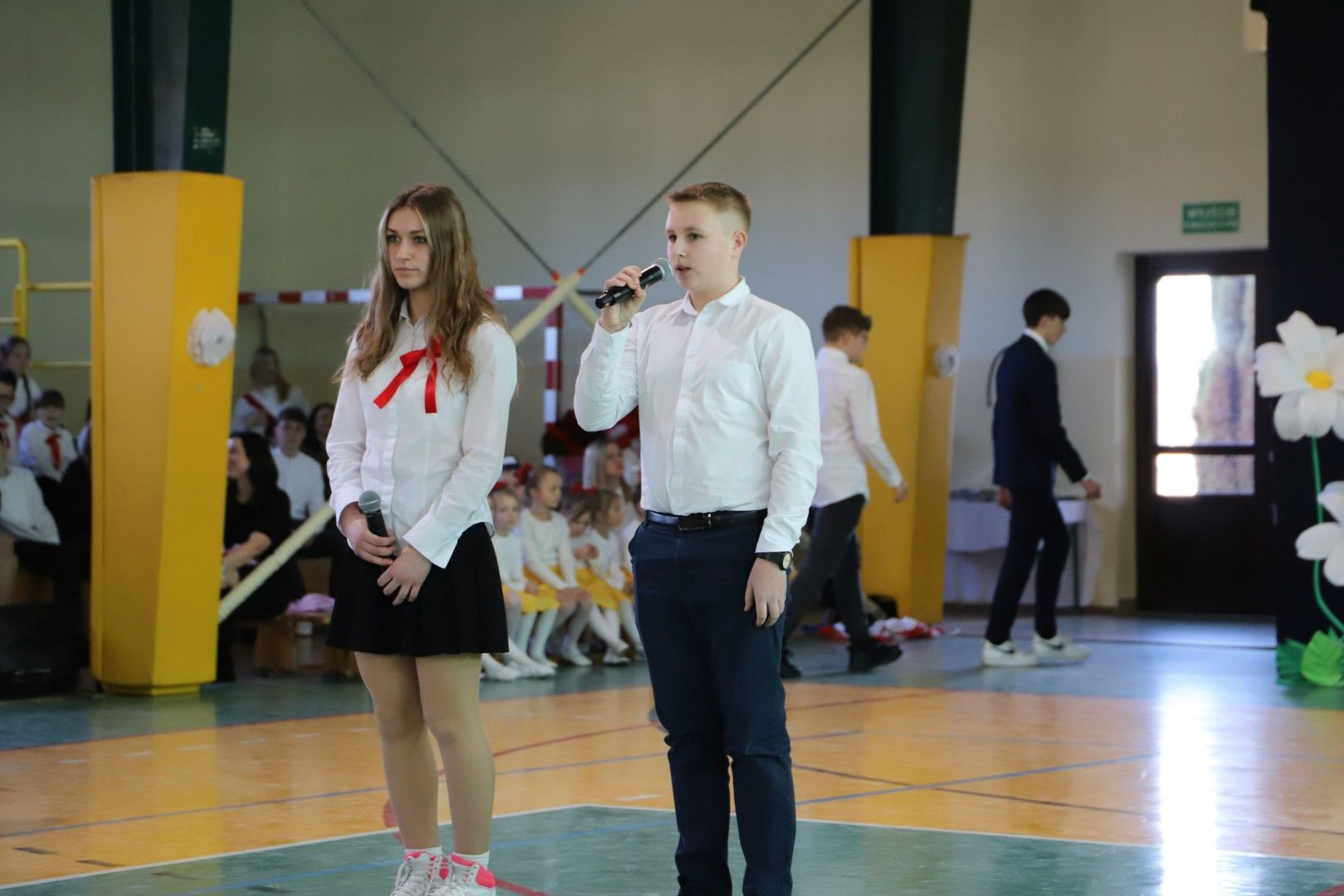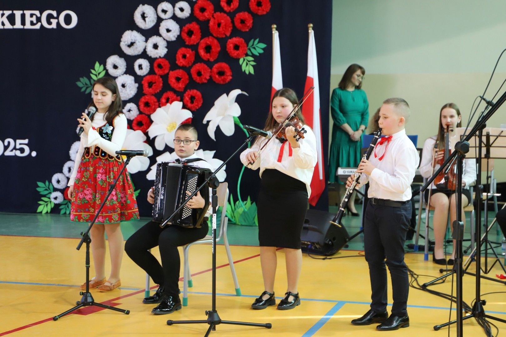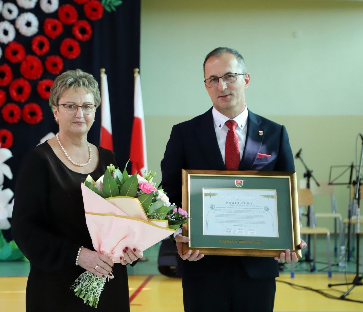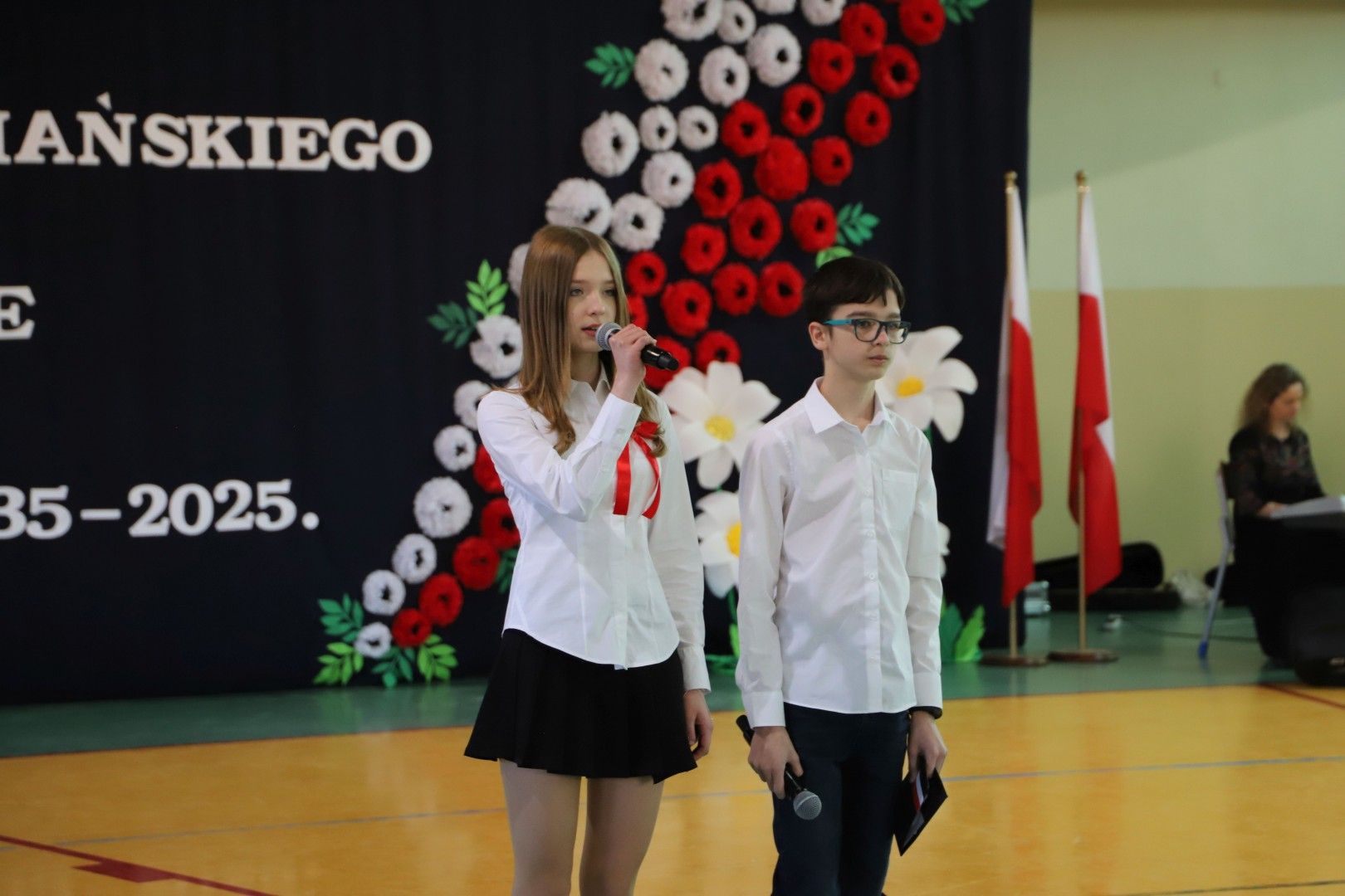 Wszystkich zebranych gości powitał Dyrektor Szkoły Pan Paweł Ciuła, który powiedział: „Dzisiejszy dzień to święto naszej szkoły, naszej społeczności i naszego dziedzictwa – moment, w którym spoglądamy wstecz na to, co udało się osiągnąć i patrzymy z nadzieją w przyszłość. 90 lat to ogromny kawałek historii, w którym nasza szkoła była nie tylko miejscem nauki, ale także sercem życia społecznego, kulturalnego i wychowawczego naszej miejscowości. Każda klasa, każdy dzwonek, każda lekcja to cegiełka w budowaniu tej wspólnoty. Dzięki zaangażowaniu wielu pokoleń nauczycieli, uczniów, rodziców i przyjaciół szkoły, nasza placówka jest miejscem, które nieustannie inspiruje do zdobywania wiedzy, rozwijania pasji i budowania trwałych wartości”.