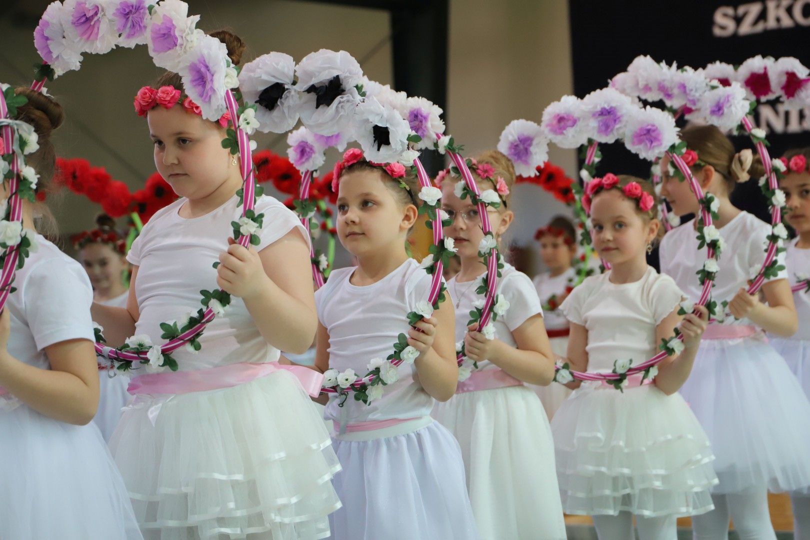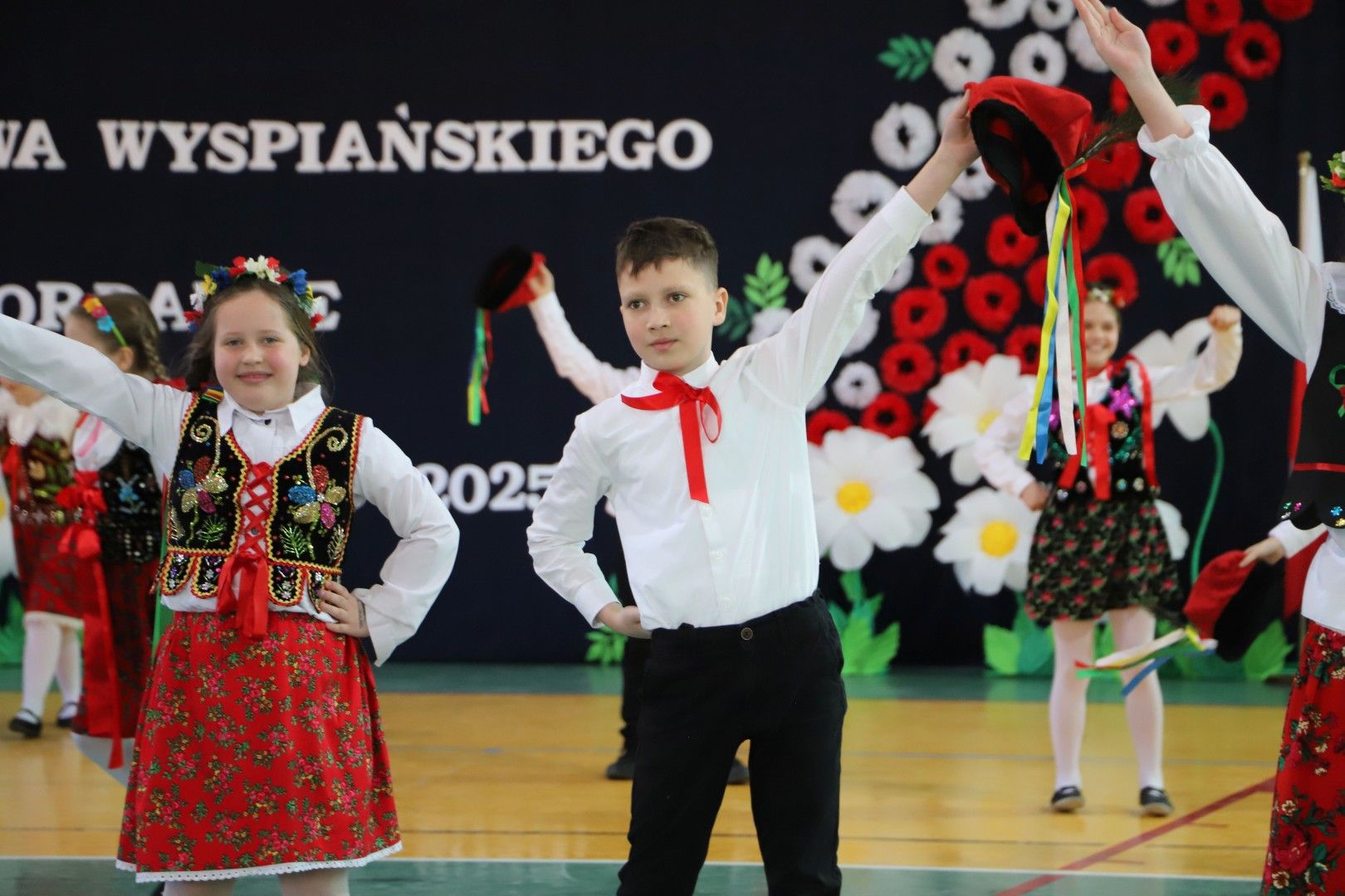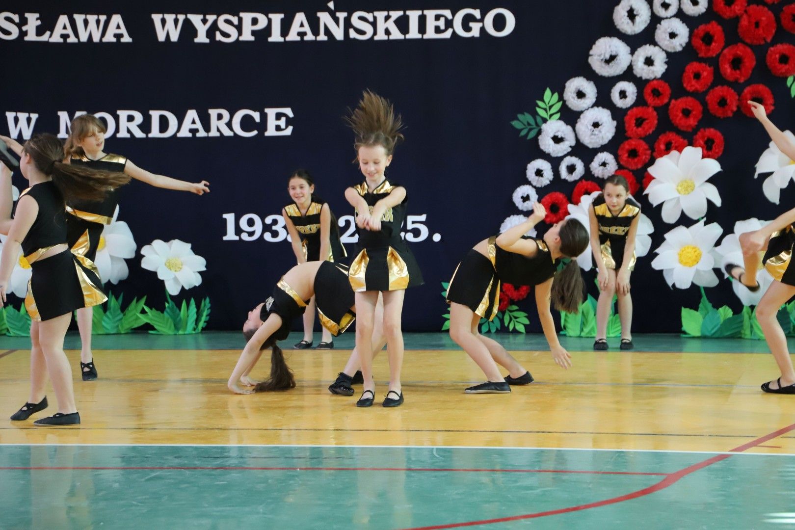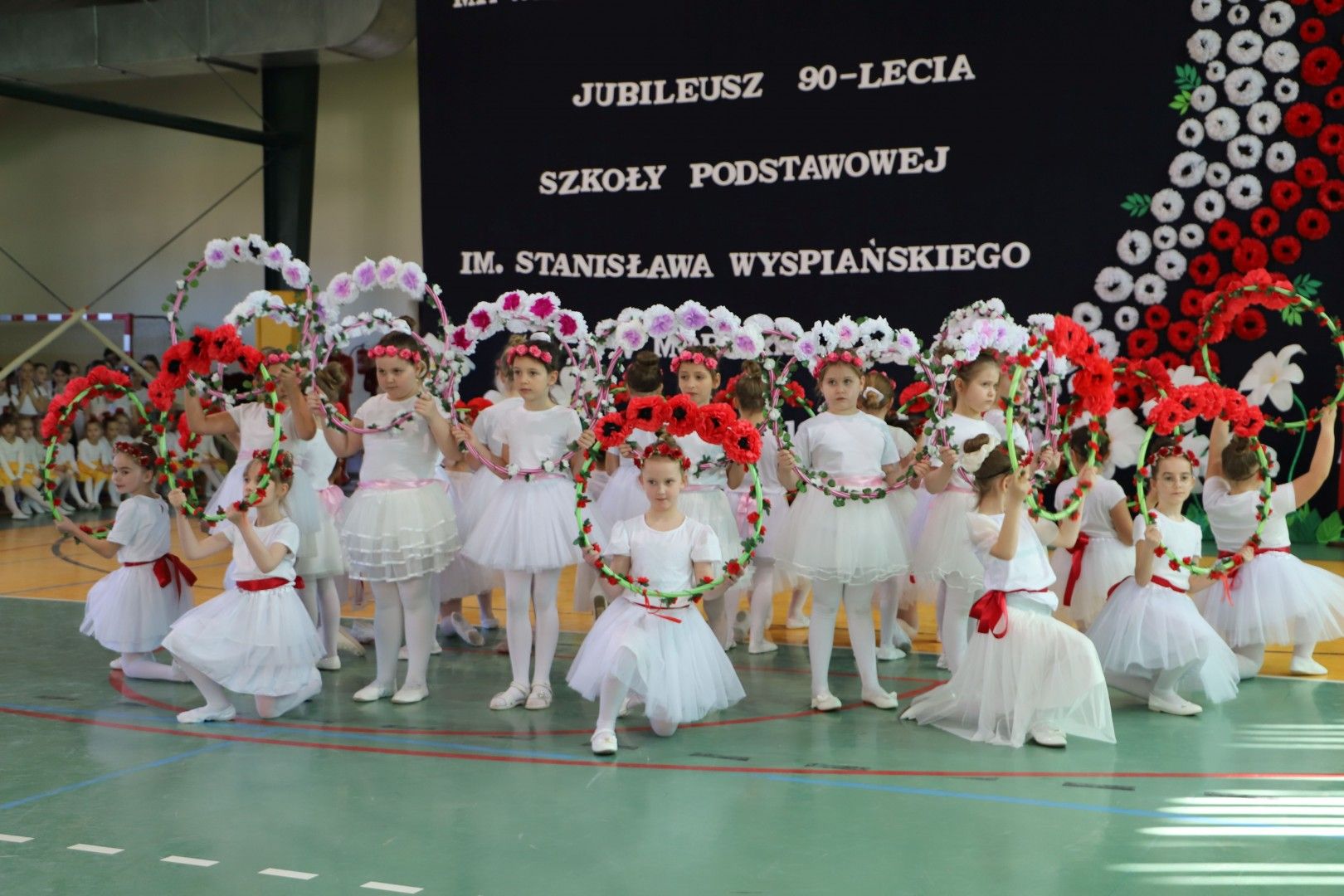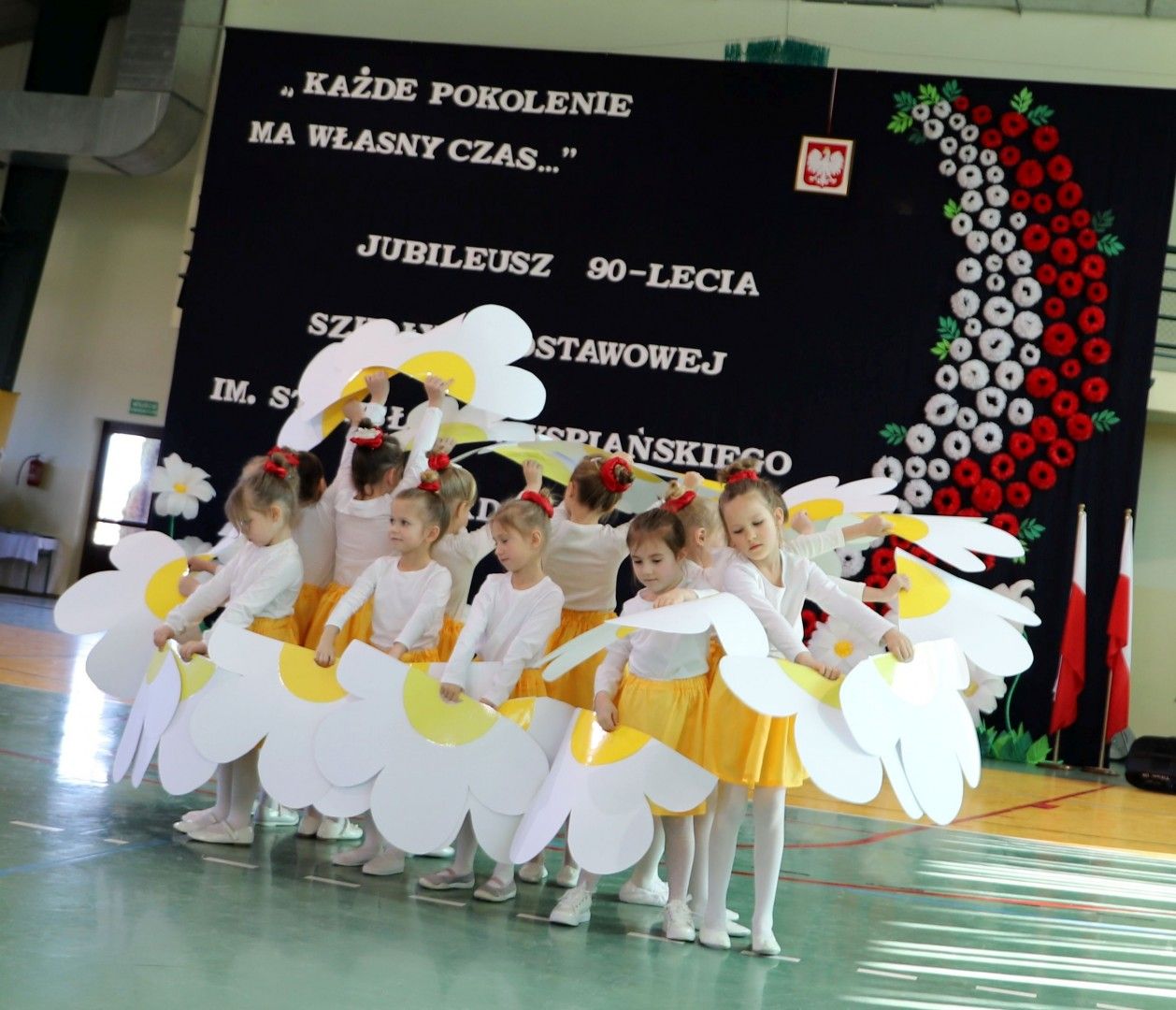 Następnie goście obejrzeli ambitny program artystyczny przygotowany przez uczniów i nauczycieli naszej szkoły. Młodzi artyści zachwycili wszystkich tańcami, grą na instrumentach, śpiewem, układami choreograficznymi, recytacjami. W trakcie uroczystości młodzież w sposób symboliczny budowała szkołę za pomocą cegiełek – wartości: historii, talentów, wdzięczności, pamięci, radości, współdziałania itp. Każdej cegiełce budowanej szkoły towarzyszył występ dzieci lub młodzieży przygotowanej przez nauczycieli: Kazimierę Biernat, Edytę Odziomek, Magdalenę Kindlik, Marzenę Kasprzyk Dudek, Ewę Tomaszek, Agatę Tomerę, Sylwię Tątę. Goście mogli również obejrzeć piękną wystawę dotyczącą historii naszej szkoły, którą stworzyły nauczycielki: Alina Cieżak, Renata Włodarczyk, Barbara Lisek, Małgorzata Król, Angelika Dąbrowska Stasica, Joanna Sowa, Klaudia Matyasik Bieda, Malwina Świerczek. Obecnych na uroczystości gości zachwyciła również monumentalna dekoracja, którą przygotowały nauczycielki: Aneta Kruszyna Sylwia Tąta, Małgorzata Kądziołka, Barbara Ryś i Jolanta Mamak. Część artystyczna zakończyła się odśpiewaniem hymnu szkoły, który powstał z okazji jubileuszu.