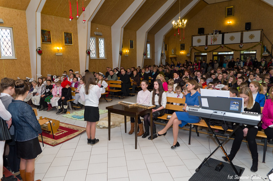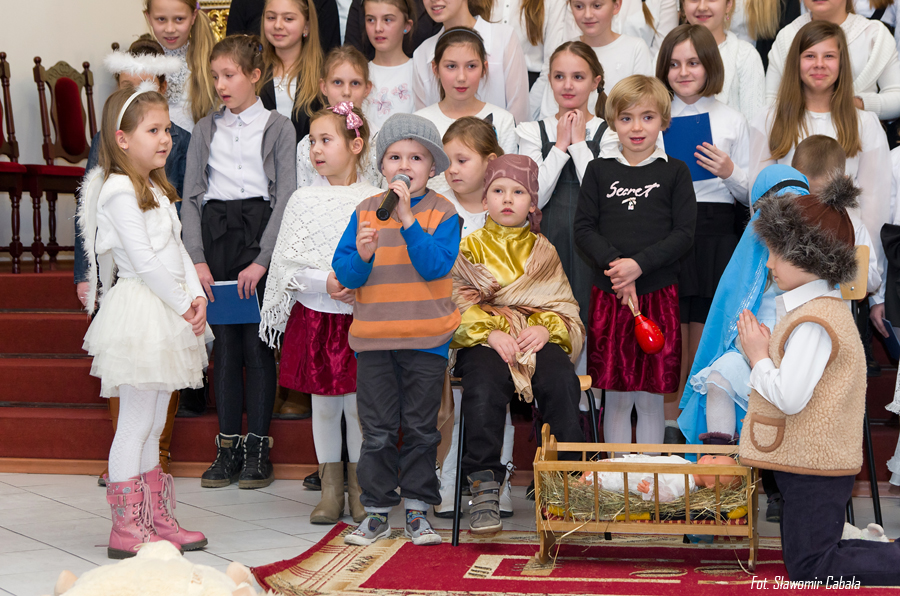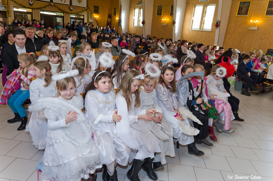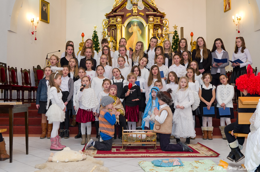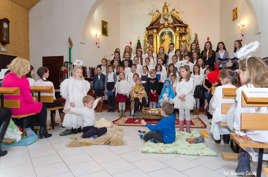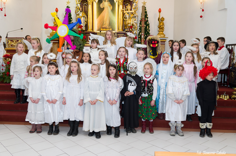 21 stycznia bieżącego roku w naszej społeczności szkolnej miała miejsce tradycyjna uroczystość kolędowania. Uczniowie, rodzice, pracownicy szkoły i zaproszeni goście zebrali się w pobliskim kościele i wzięli udział we Mszy Świętej, po czym uczniowie zaprosili zebranych na koncert kolęd i pastorałek w wykonaniu solistów i chóru szkolnego. Uczniowie klasy piątej recytowali nastrojowe wiersze o tematyce świątecznej. Zaprezentował się również zespół folklorystyczny, kierowany przez Pana Krystiana Curzydło, a także przedszkolaki z naszej szkolnej zerówki. Zapraszamy do obejrzenia zdjęć.