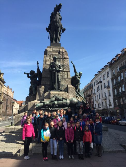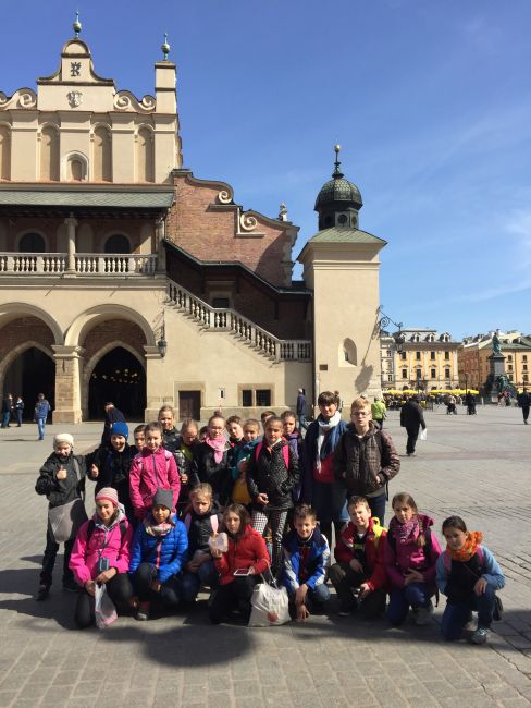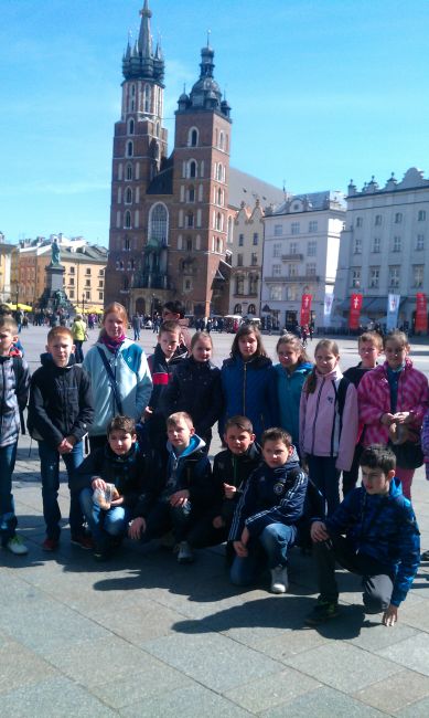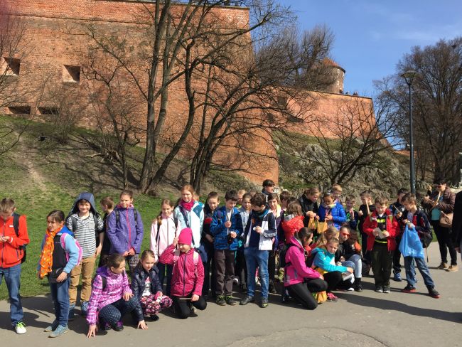 Kraków - Wawel W dniu 9 kwietnia dzieci ze szkoy podstawowej uczestniczyły w niezwykłej lekcji historii. Z inicjatywy Ministra Kultury i Dziedzictwa Narodowego, Zamek Królewski na Wawelu przygotował specjalny program skierowany do grup szkolnych rozpoczynających naukę historii. Z tego programu skorzystali wlaśnie nasi uczniowie, którzy z przewodnikiem mogli za darmo zwiedzić zamek. Wycieczka rozpoczęła się od zwiedzania placu Matejki, pomnika grunwaldzkiego i pomnika Nieznanego Żołnierza. Następnie przeszliśmy pod Barbakan i omówiliśmy cechy stylu romańskiego.Ulicą Floriańską przeszliśmy na Rynek, wysłuchaliśmy hejnału i obejrzeliśmy sukiennice. Później weszliśmy do kościoła św. Franciszka i podziwialiśmy tam witraże a także polichromię wykonaną przez naszego patrona stanisława Wyspiańskiego. Wreszcie udaliśmy się na Wawel i tam z przewodnikiem obejrzeliśmy dwie wystaw: Kraków zaginiony, a także architektura i sztuka doby Oświecenia. Poznaliśmy wiele ciekawych historii, przypomnieliśmy sobie fakty dotyczące dynastii Jagiellonów i królów elekcyjnych, poznaliśmy obyczaje i życie codzienne mieszkańców zamku. Największe wrażenie zrobiły na nas arrasy - historia ich powstania, tragiczne dzieje w czasie drugiej wojny światowej, kazdy z nich zrobiony jest z kilku kilogramów srebra i złota. Po obejrzeniu komnat przeszliśmy do Katedry wawelskiej, gdzie pomodliliśmy się przy grobach królów, pary prezydenckiej i marszałka Piłsudskiego. Oczywiście odwiedzliśmy też smoka, który jak zwykle postraszył nas ogniem. Uczniowie zakupili sprzęt rycerski - łuki, kusze, elementy zbroi i pełni wrażeń poszliśmy do Mc Donalds'a. O 16 wyjechaliśmy z Krakowa i w wyśmienitych nastrojach wróciliśmy do domu. Edyta Odziomek